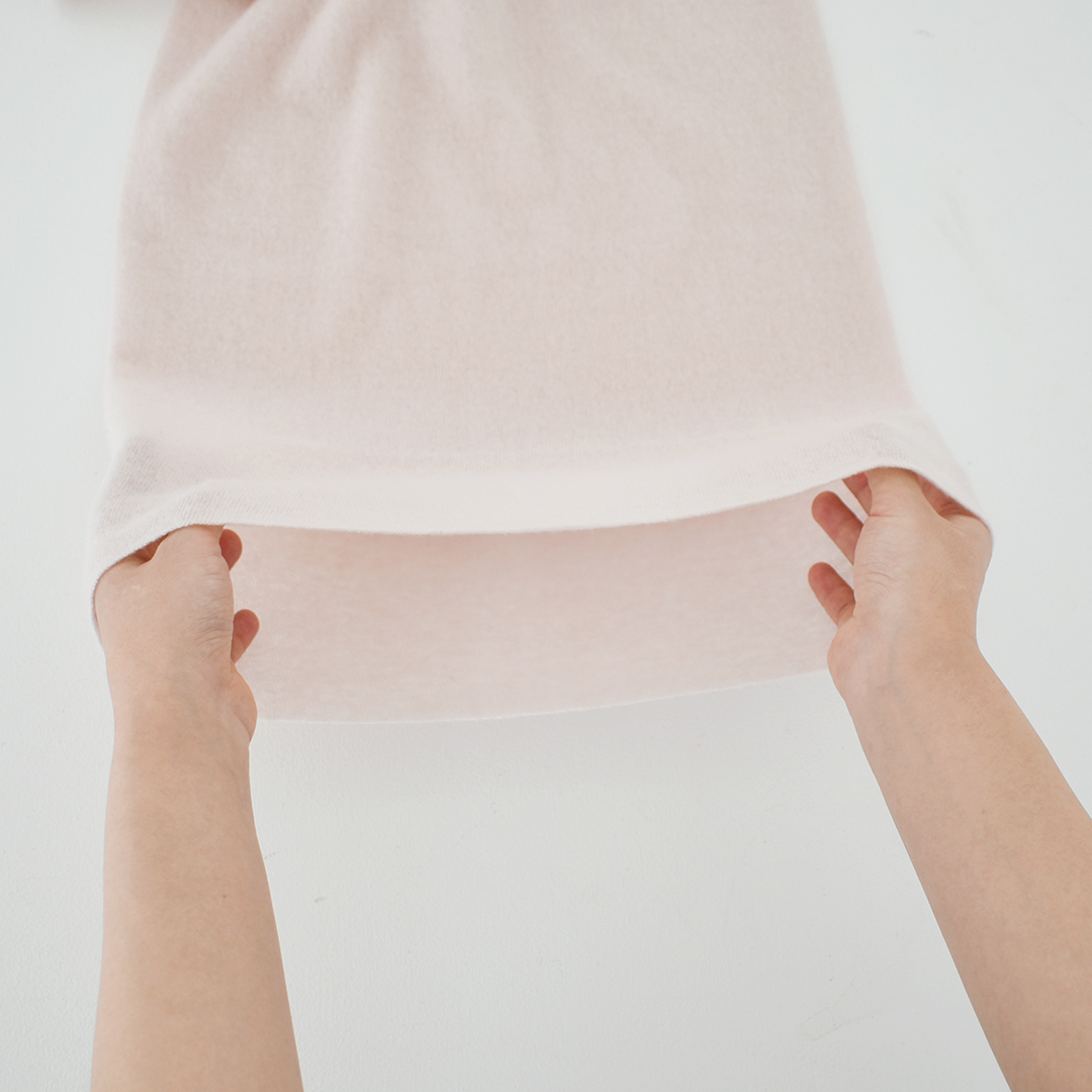 昭和5年より80年以上カシミヤの糸を生産している大阪の工場に糸の生産をお願いしています。カシミヤは毛が細く、高い密度をもちながらも、軽くて暖かく、ふんわりとやわらかい極上の肌ざわりです。