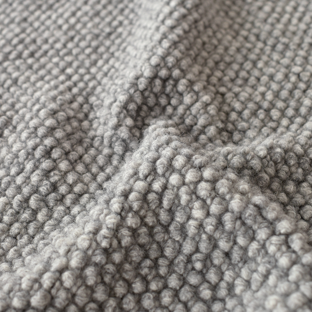 ぽこぽことしていて表情がかわいい編みのウールで、切りっぱなしでもお使いいただけます。ジャケットやコートなどにも。 -