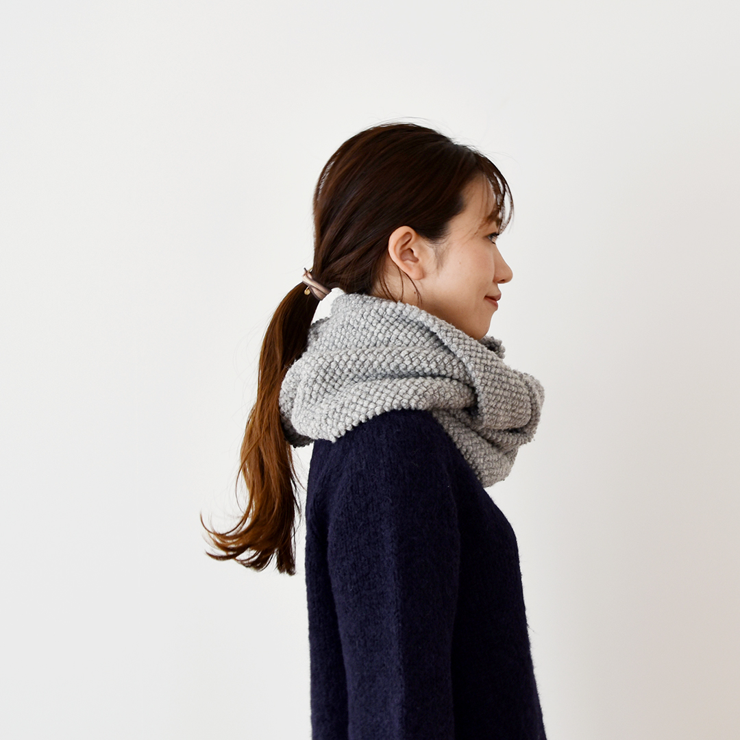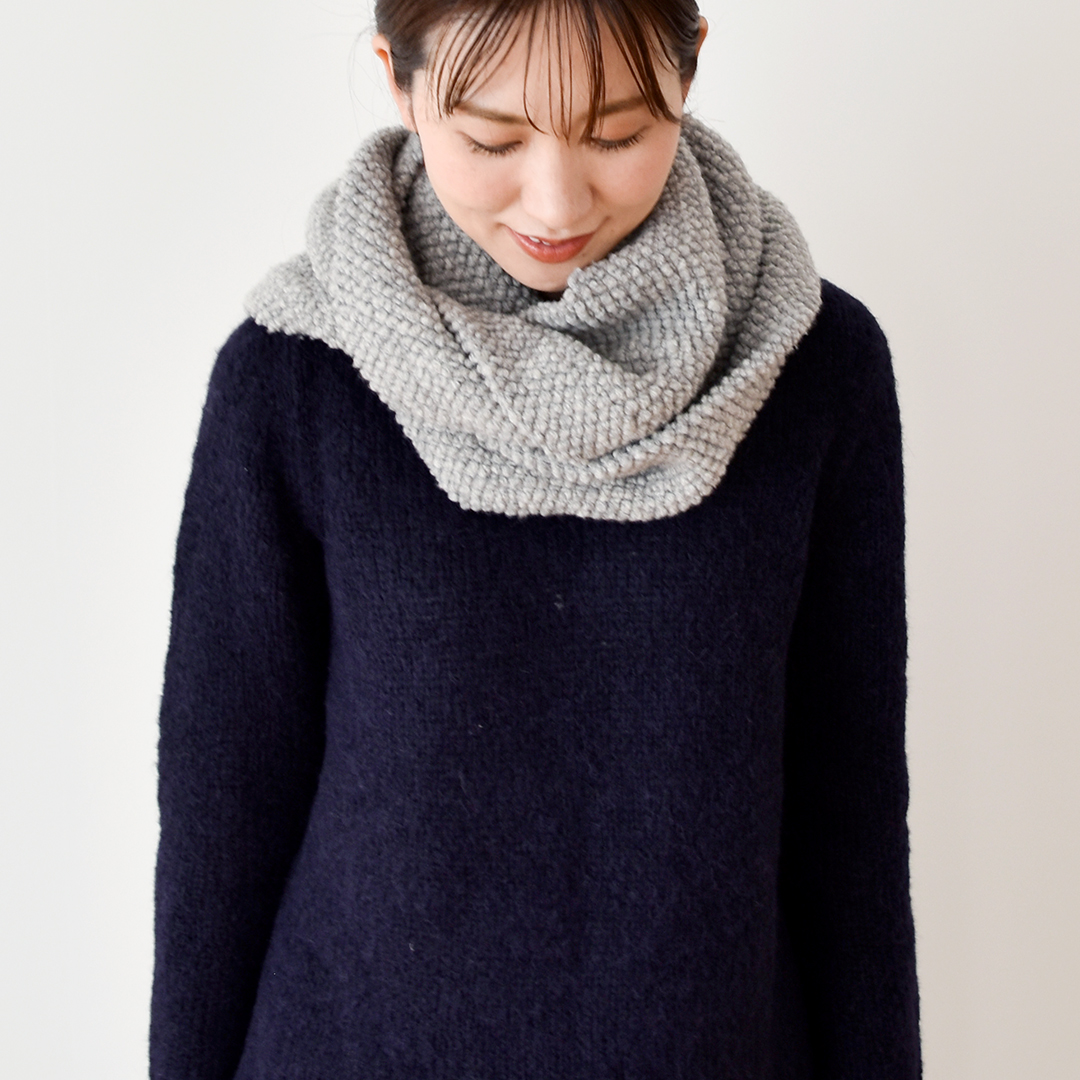 ぽこぽこウールのスヌードは、見てもホコホコ暖かく、巻いてもヌクヌクあたたかい、冬の季節を楽しく過ごせる1枚です。