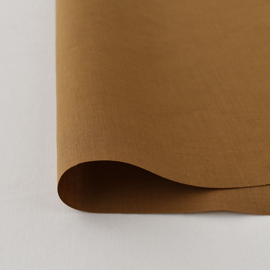 タテ糸に細番手のコットン、ヨコ糸に繊細なリネンの糸を使って織られています。ナチュラルな光沢があり、ハリ感のある布です。