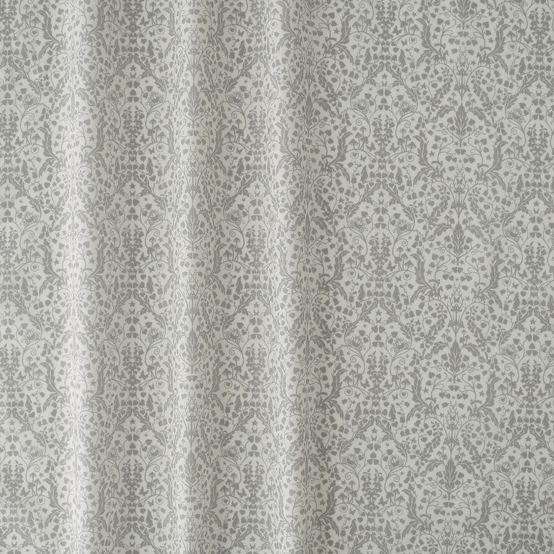 魅惑的な蔓や散りばめられた星の間に密かに織り込まれた魔法の世界をモノトーンで表現しました。おとぎ話に出てくる馬車や英雄的な騎士が葉のうねりに沿って移動したり、奇妙なキノコの下に森の動物たちが集まってきたりと、植物のワンダーランド奥深くへと誘ってくれます。