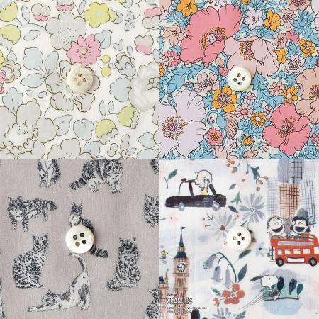 ※リバティプリントの布は商用使用可となっております。その際は、リバティ社の製品と間違われるような行為(ロゴ使用、"リバティ"単独表記)及び、柄のスキャン、印刷は禁止されておりますのでご注意ください。