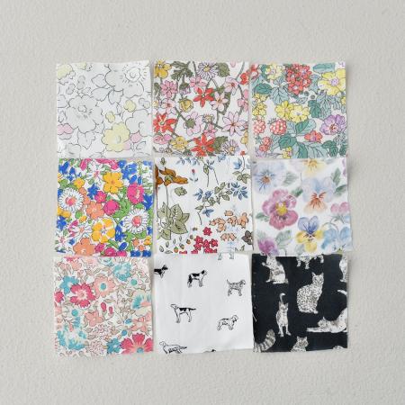 ※リバティプリントの布は商用使用可となっております。その際は、リバティ社の製品と間違われるような行為(ロゴ使用、"リバティ"単独表記)及び、柄のスキャン、印刷は禁止されておりますのでご注意ください。