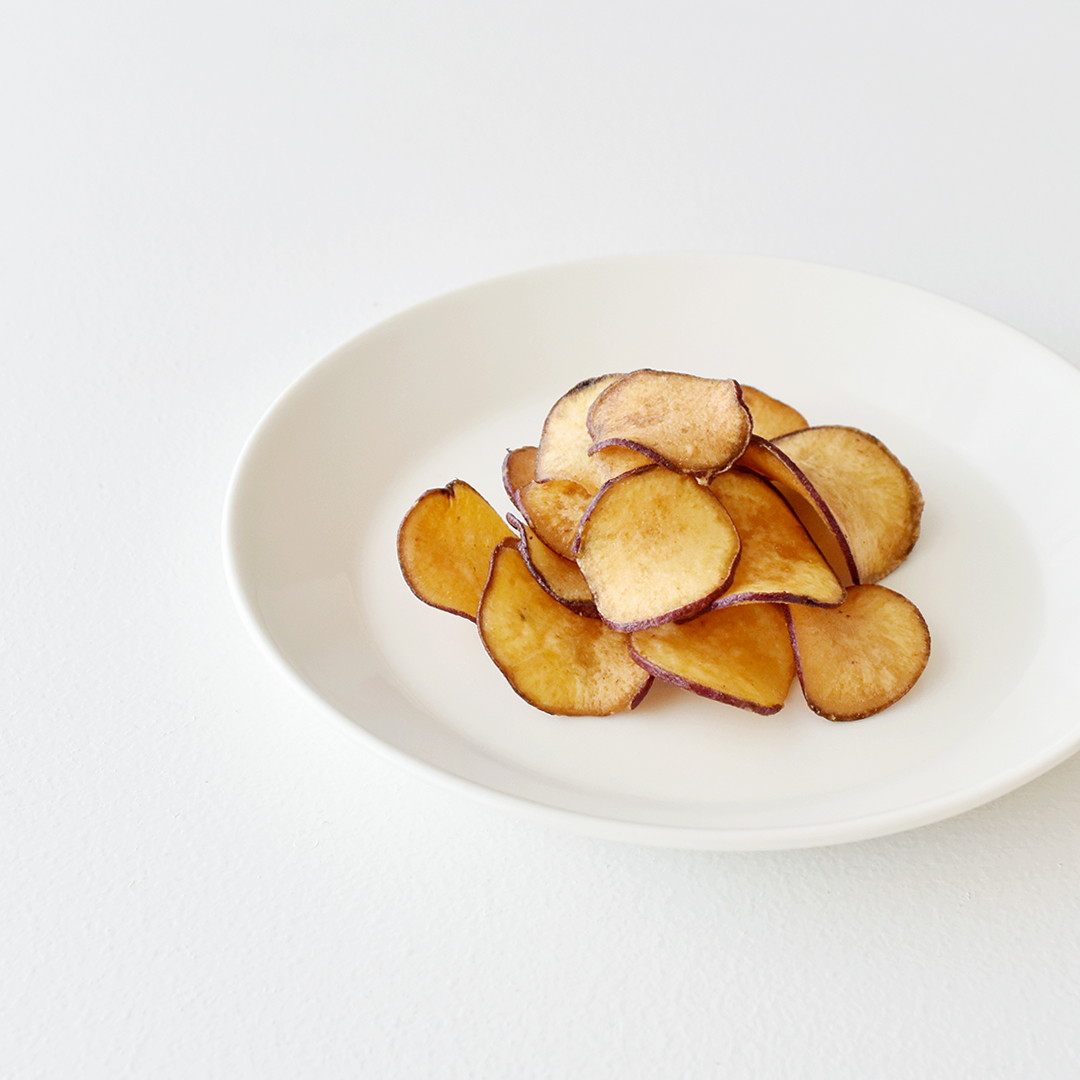 日本の大地で力強く育った上質なさつま芋を、純国産米油で皮ごとカリッと揚げました。