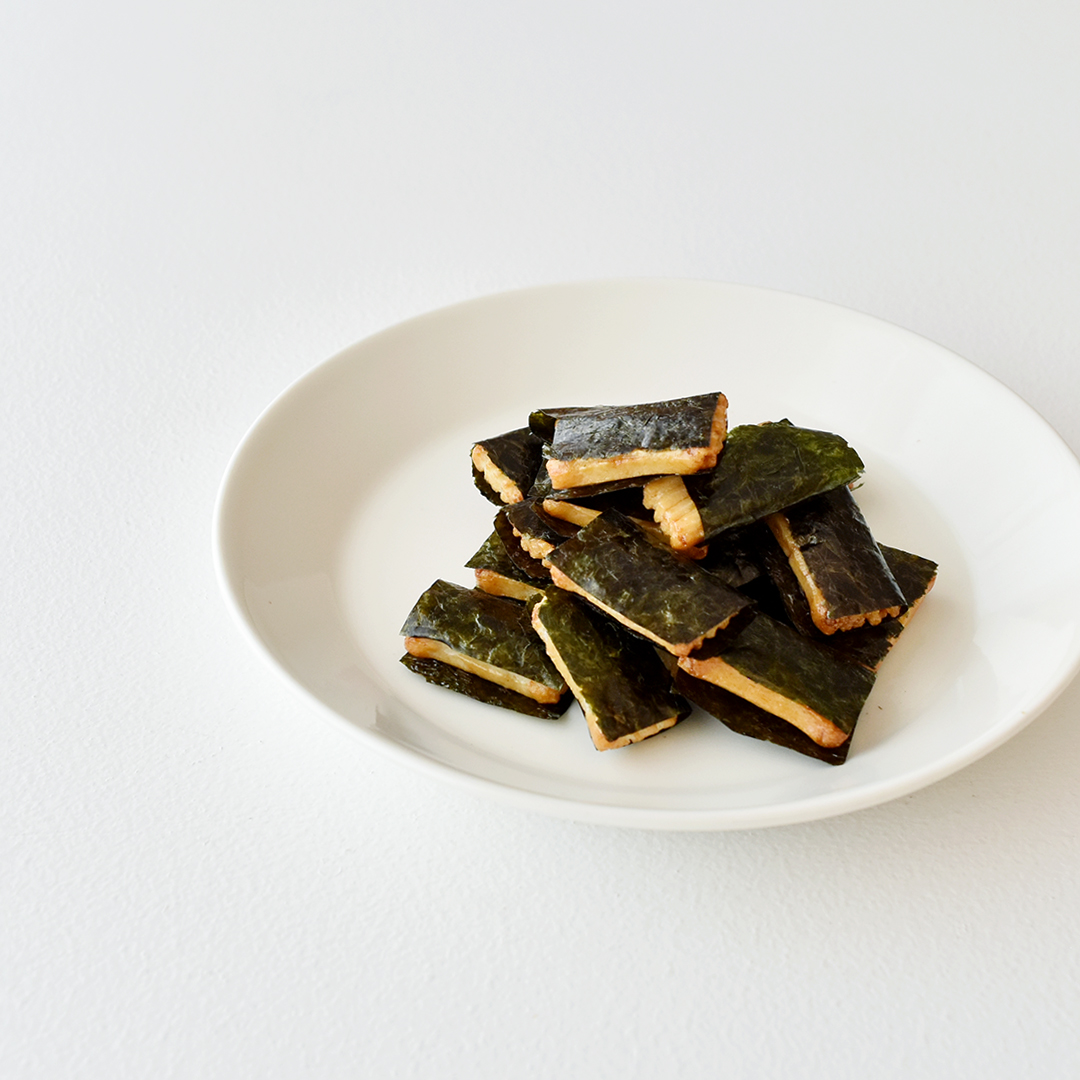 精米したての国産もち米を使って焼き上げたサクッと軽い食感の生地に、自然の味そのまんまマヨネーズ、小麦を使わない国産丸大豆たまり醤油、粗糖をからませた特製マヨあられ。