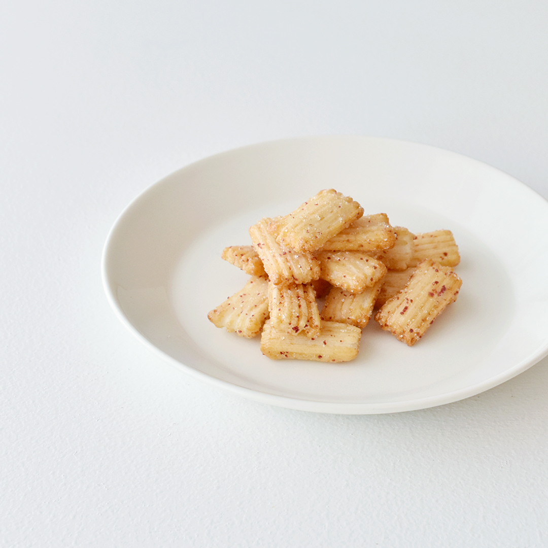 カリカリ、ポリポリ、止まらないおいしさです。素材が持つ味わいをそのままシンプルに生かした職人の技が輝く芋かりんとうです。 -