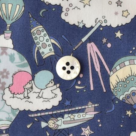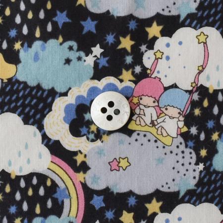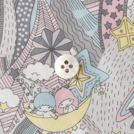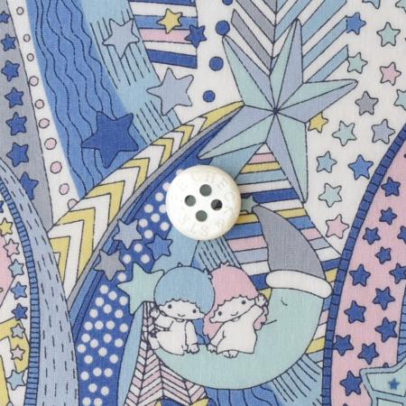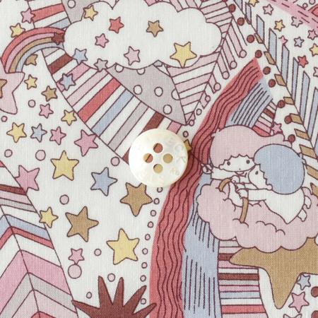 星空と枕のように柔らかな雲が夢の国の様です。きらめく星と輝く雨摘が子供時代の思い出を連想させるこの魅力的なプリントは、ロバート・ルイス・スティーヴンソンによる「子供の詩の園」の詩をベースに2015年に作られました。今回のコラボレーションのために、この魔法のようなリバティの世界にリトルツインスターズが加わり、さらに楽しそうなプリントになりました。ⓒ 2025 SANRIO CO., LTD. APPROVAL NO. L656909 -