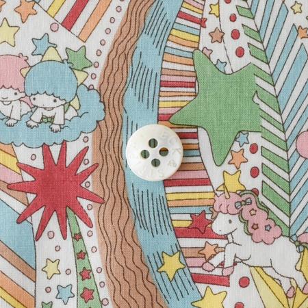 2010年SSコレクション用にリバティのデザインスタジオで描かれた「マイ・リトル・スター」に、きらめく夜空を楽しそうに飛んでいるリトルツインスターズが書き加えられました。「マイ・リトル・スター」は、ロンドンのグリニッジ王立天文台の空と時の研究から着想を得て、サイケデリックな流星と彗星が重なるようにレイアウトされ、夢のような夜空が描かれました。ⓒ 2025 SANRIO CO., LTD. APPROVAL NO. L656909 -