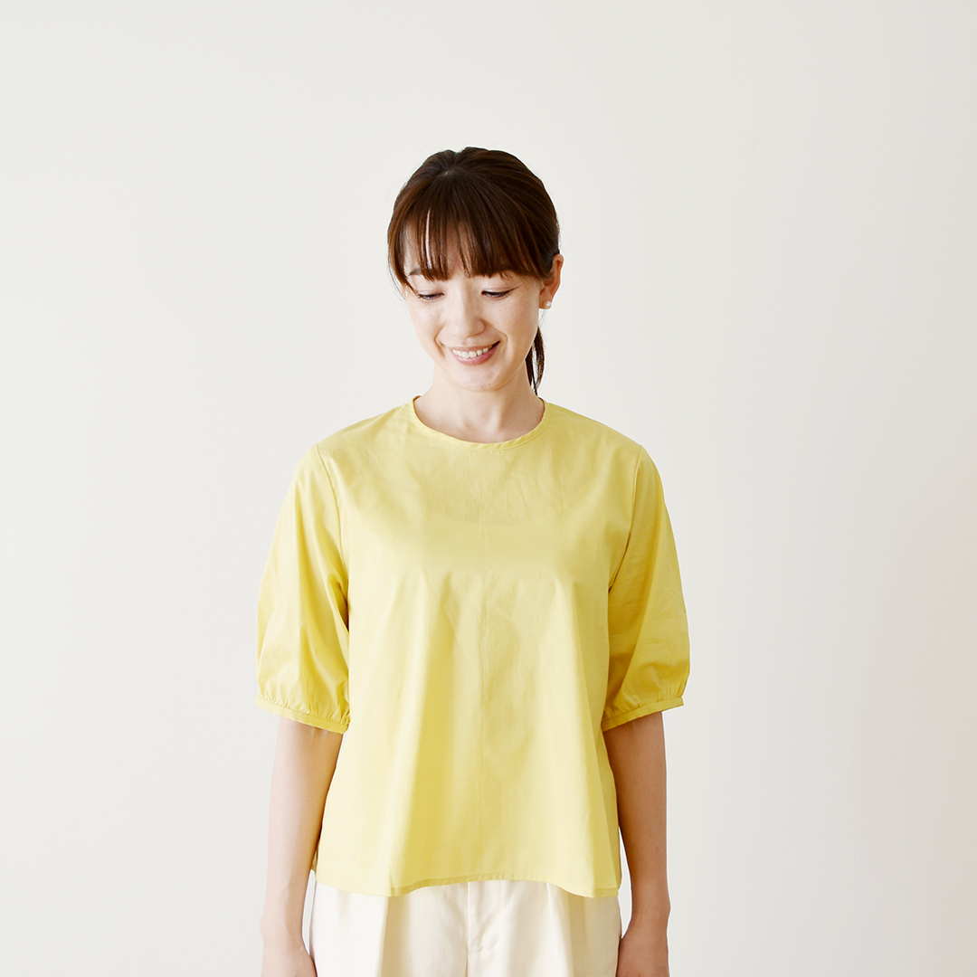 カナリーイエロー:『CHECK&STRIPE COLOUR BOOK 色を楽しむソーイングブック』(文化出版局) 後ろリボンのブラウス