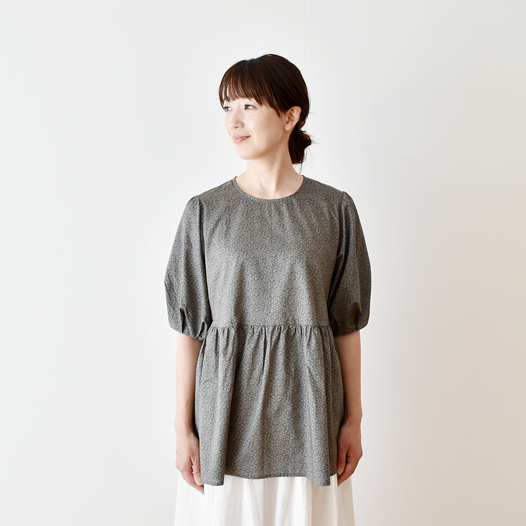 こちらの布をお買い上げのお客さまに、フリル衿のブラウスのレシピをおつけいたします。オンラインでは初めてご紹介するレシピです。(サンプル:◎J26C(フレンチ系)) ※用尺:108cm幅×2.5m
