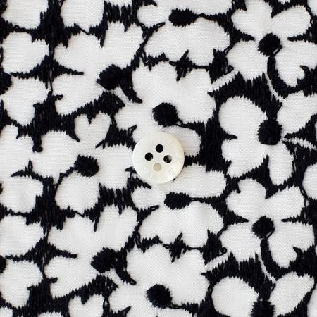 モチーフ(花)ではなく、図案の地の部分を刺しゅうする珍しい手法を取り入れ、他の刺しゅう生地は違った表情をお楽しみいただけます。