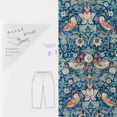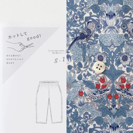 カットしてgood!パターン「シンプルテーパードパンツ」とリバティプリント「Strawberry Thief Spring AE(ブルー系)」の着分セット