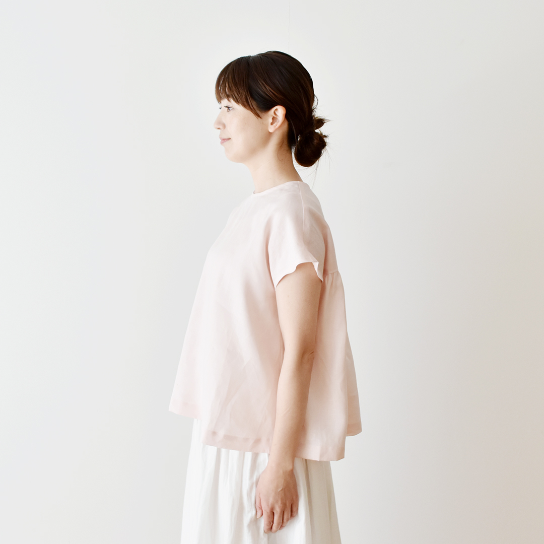 こちらの布をお買い上げのお客さまに、後ろヨークギャザーブラウス/ワンピースのレシピをおつけいたします。(サンプル ブラウス:パウダーピンク) ※用尺:105cm幅×1.6m