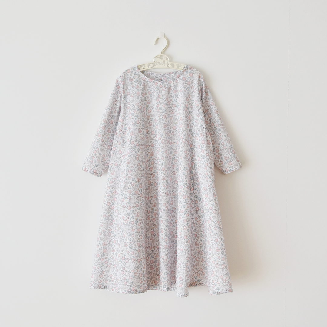 ◎J25A(ピンク・ブルー系):『CHECK&STRIPE Sewing Diary in Paris パリのソーイングダイアリー』(世界文化社) サイドギャザーのワンピース 子ども