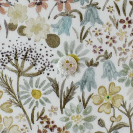 19世紀英国のマジョリカ陶器から着想を得た、手描きによるボタニカルデザインです。穏やかな野花の情景を描き出し、豊かなテクスチャーを感じさせる構成の中に、デイジーやパンジー、ブルーベル、プリムローズ、エルダーフラワーが、大小さまざまなフォルムで調和よく描かれています。ミクストメディアで表現された「ハル・ブルーム」は、色と形が織りなす静けさと安らぎを湛え、色彩豊かな春の草原をそっと吹き抜ける、やさしい風のような落ち着いた佇まいを放ちます。