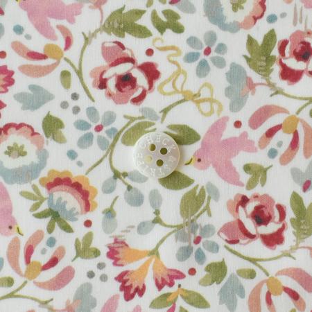 1920年代のプール・ポタリーによる「トラディショナル・ウェア」へのオマージュとして生まれた、カンバセーショナル・パターン「エマ・レイ」。手描きによる装飾技法のクラフツマンシップを讃えています。リバティのアーカイブで発見されたオリジナルアートワークを再解釈し、ノスタルジックなローズや花束を、繊細なリボンで結んだモチーフとして描写。フォークアートの趣を感じさせる表情が、ヘリテージに根ざしたタイムレスなロマンティシズムを呼び起こします。花々の間には小さな鳩がさりげなく舞い、デザインにやわらかな動きと生命感を添えています。