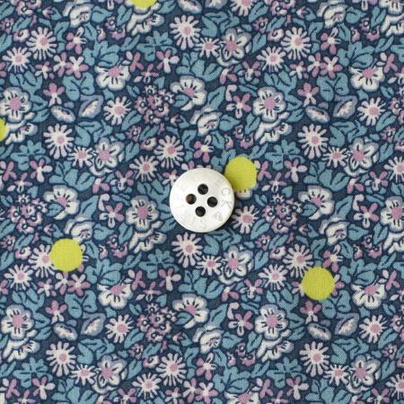 オリジナルはリバティの1979年春夏コレクションで発表された緻密で小粋なボタニカルデザインで、ヒナギク、バラ、アサガオなど、さまざまな花がシームレスな多方向の草原をなしています。水玉模様の遊び心を加えて再構築されたこのデザインは、時代を超えて幅広く使え、遠くから見るとまるでテクスチャーのある素材のように見えます。 -