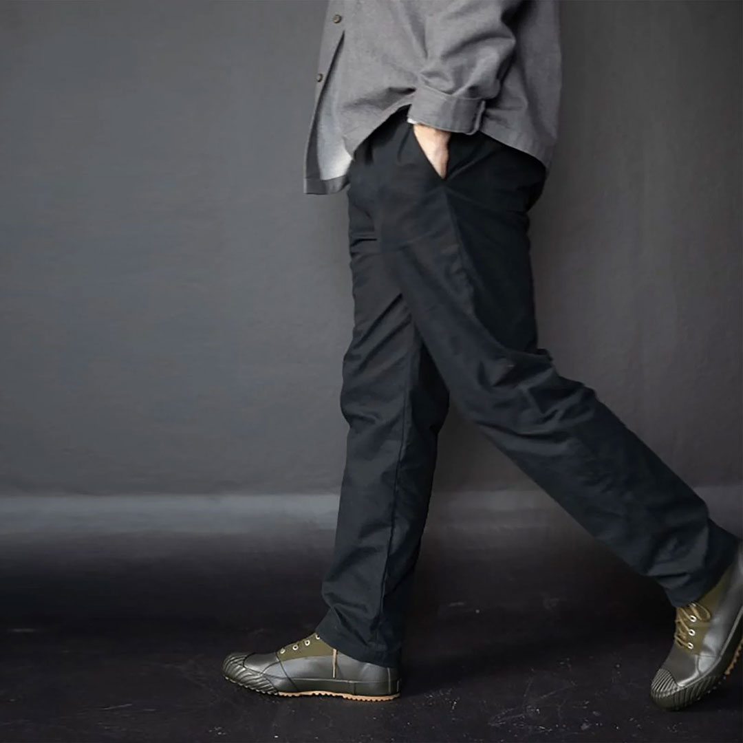 ゴムを通したウエストで普段着に着やすいメンズパンツの型紙。正面に斜めのポケットと後ろ側にパッチポケットが付いています。