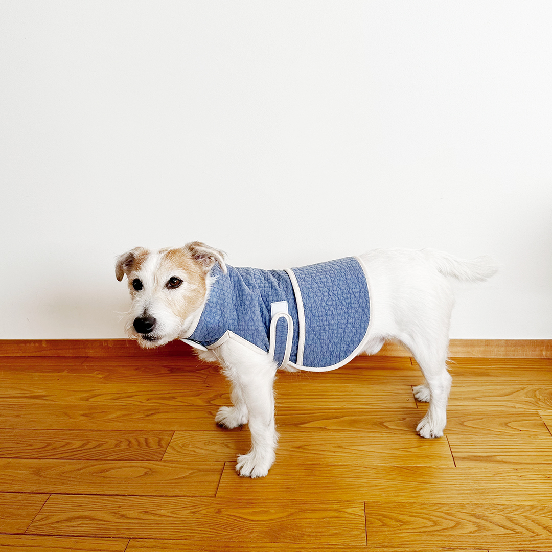 出来上がりサイズ:タテ約40cm×ヨコ約50cm<br />ジャックラッセル トコ(写真)のサイズ…首回り30cm、胴回り50cm、首回りの交点からしっぽの付け根までの距離45cm、体重10kg