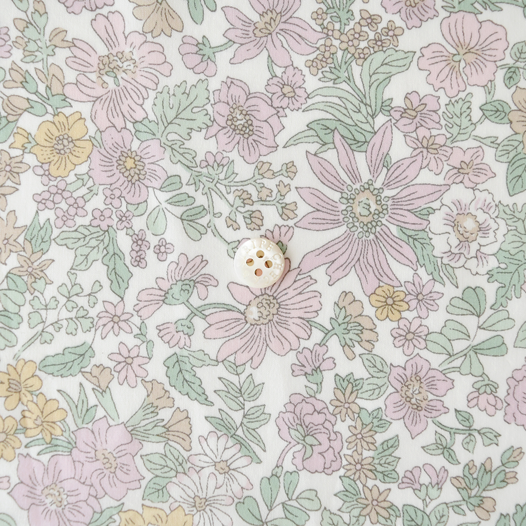 1993年にリバティのスタジオで再描画された「エミリー」は、1940年代のアーカイブプリントから着想を得ています。ヒナギクやマーガレットなどバラエティーに富んだ花を繊細な輪郭でラフに描かれ色付けされた中サイズの花柄です。
