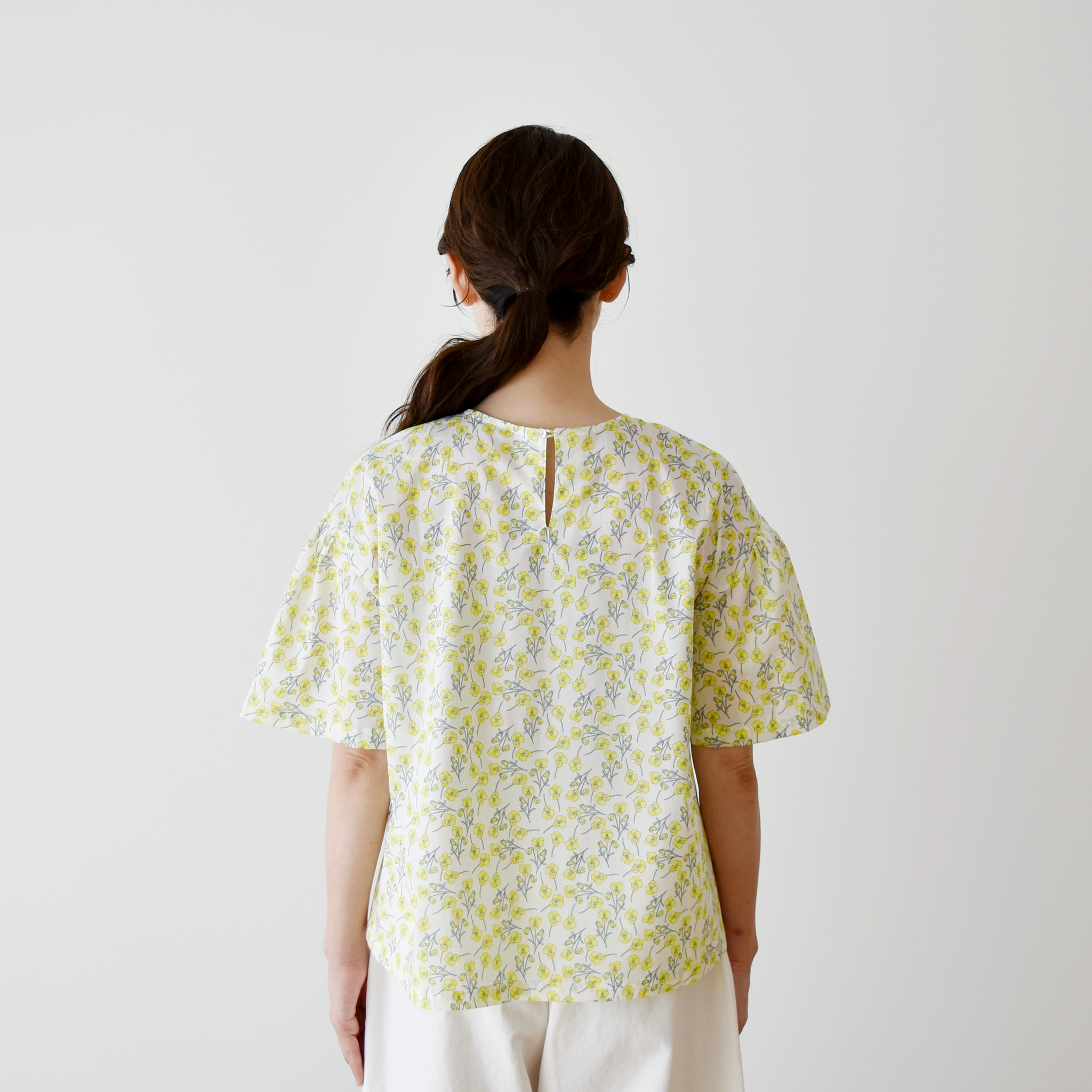 (ギャザースリーブのブラウス) リバティプリント Ros(◎J21C イエロー系) -