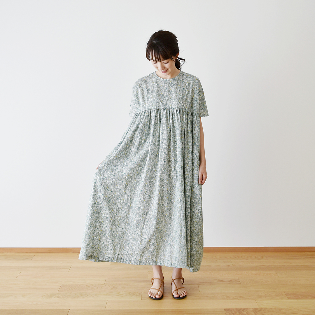 (ハイウエストのギャザーワンピース) リバティプリントKatie and Millie(LFEグリーン系)