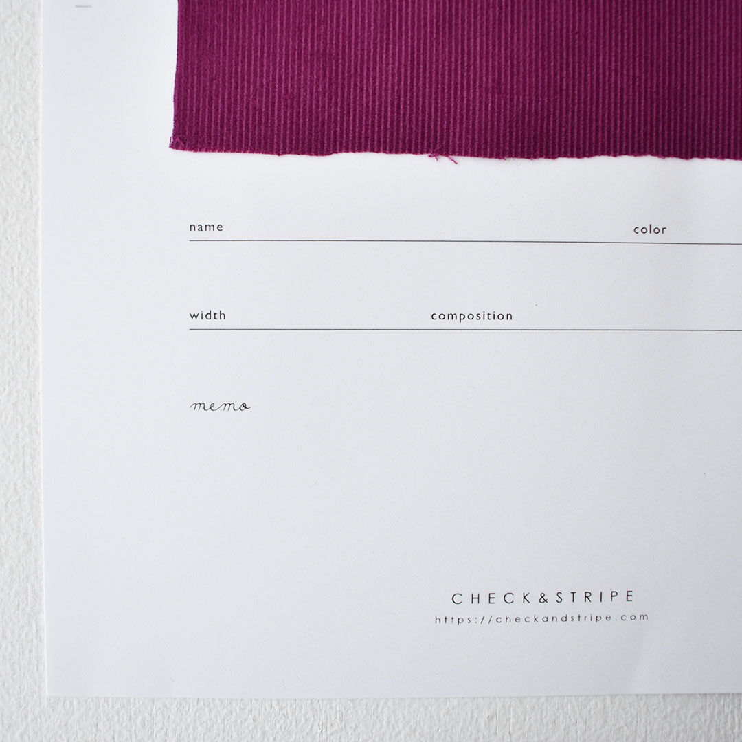 台紙の生地名/色名等は空欄となっておりますので、お客さま自身でご記載くださいませ。