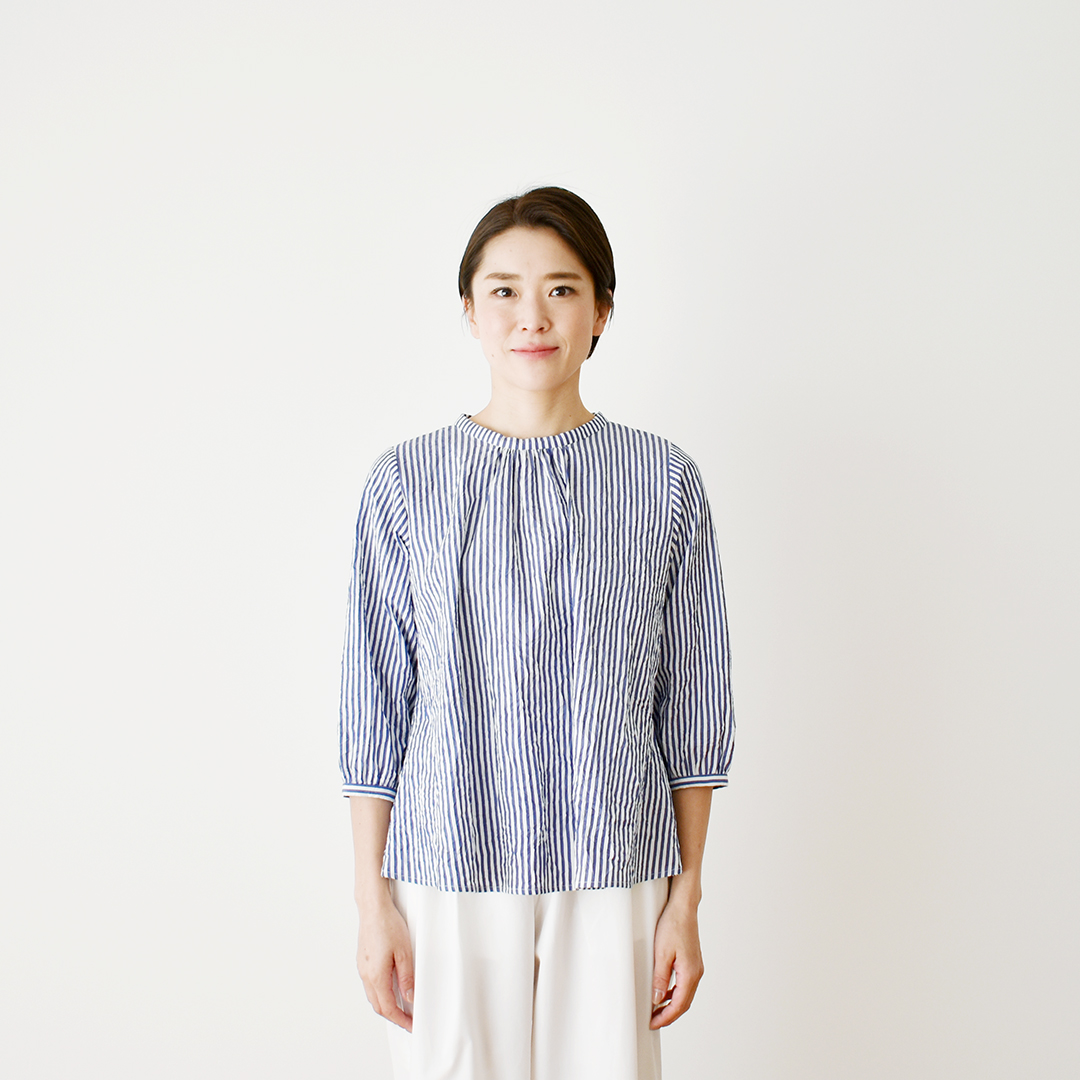ブラウス:C&S sunny day stripe ブルー×ホワイト