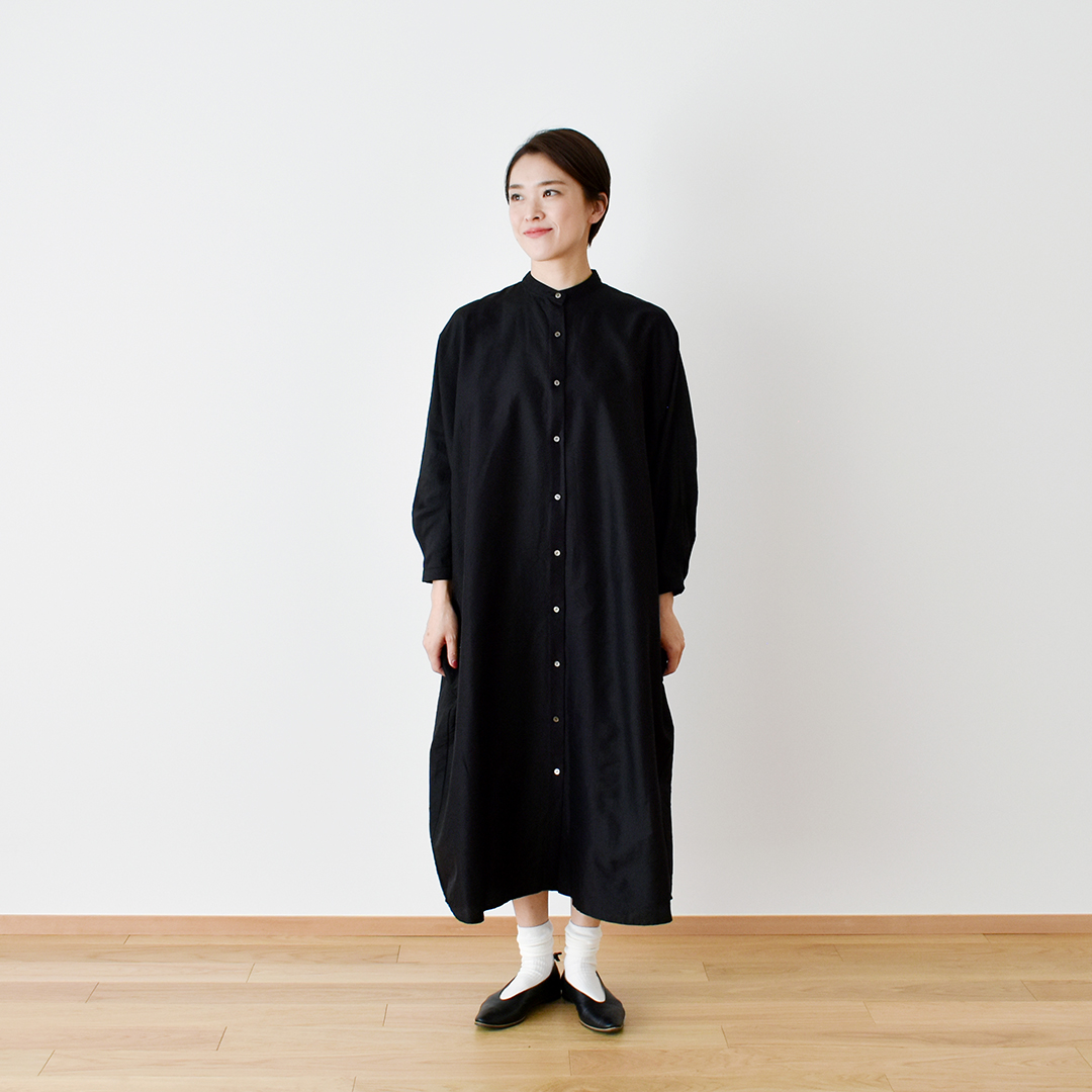 ワンピース:C&S コットンシルクリンクル ブラック -