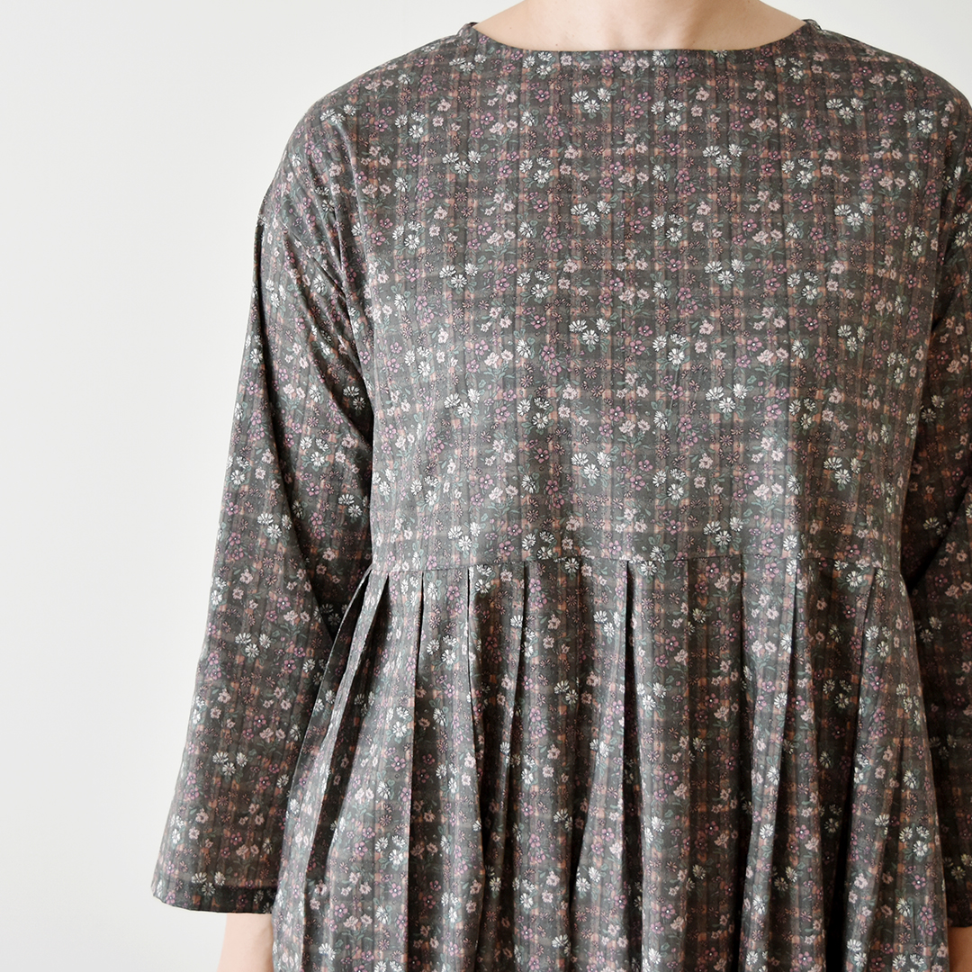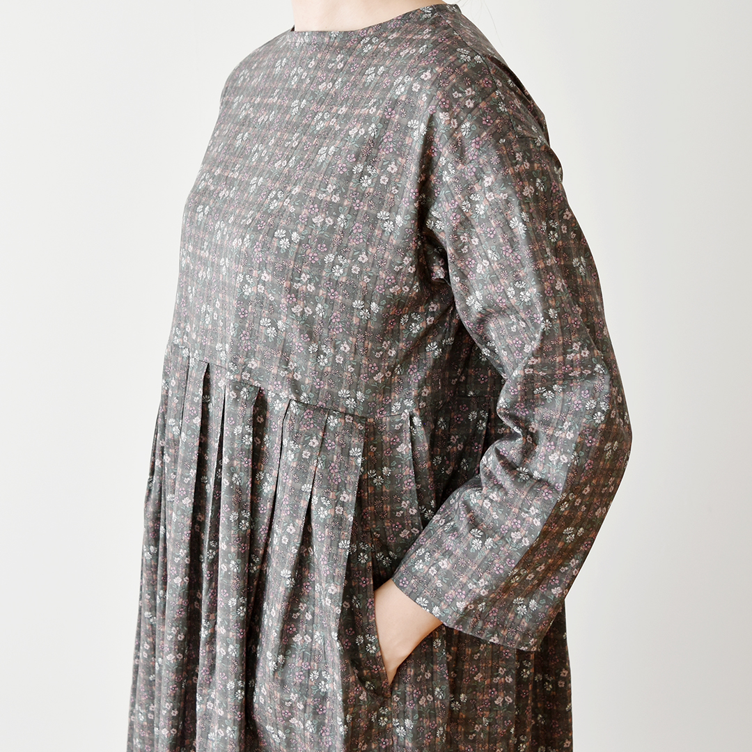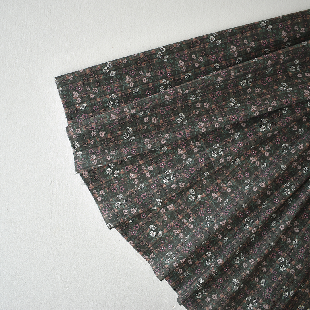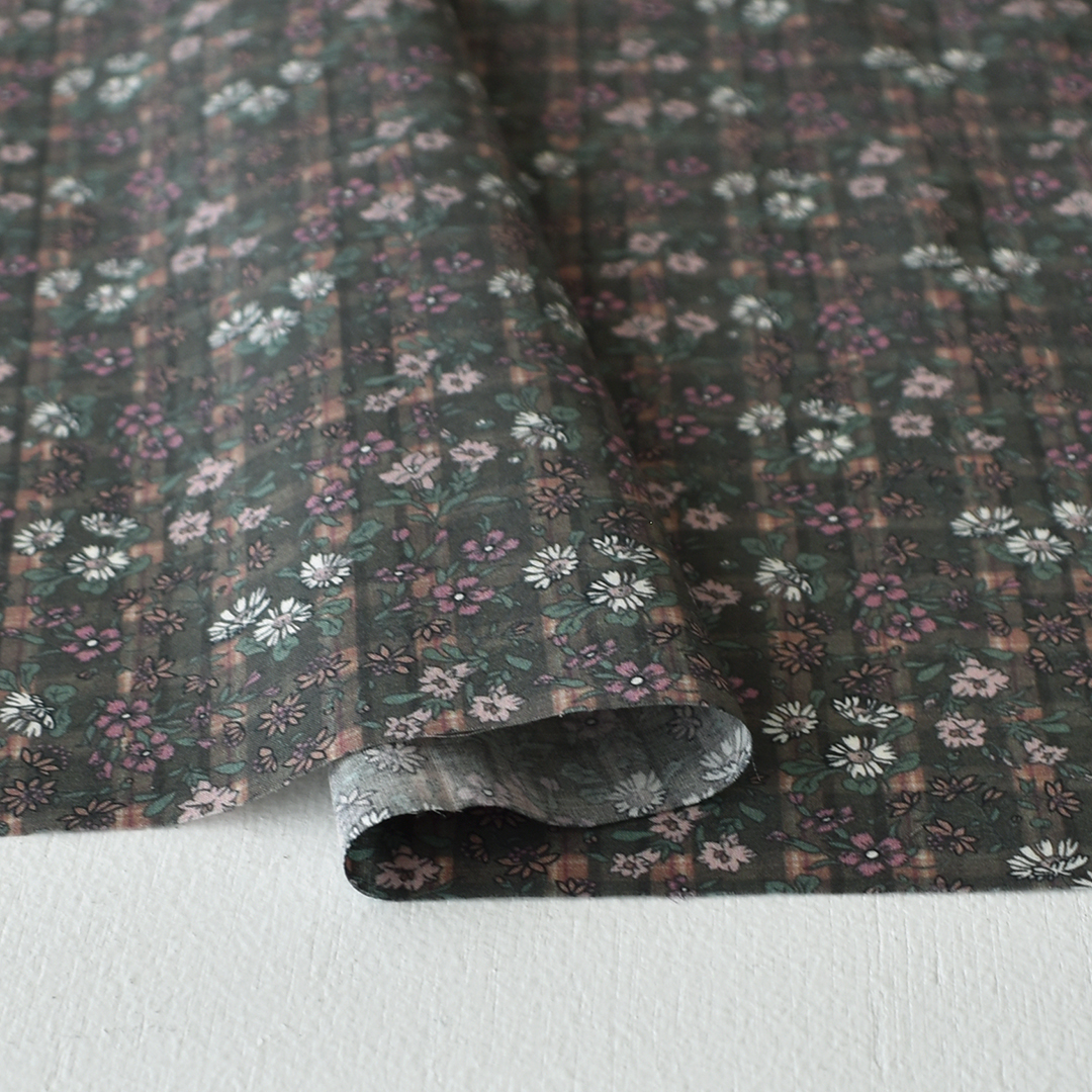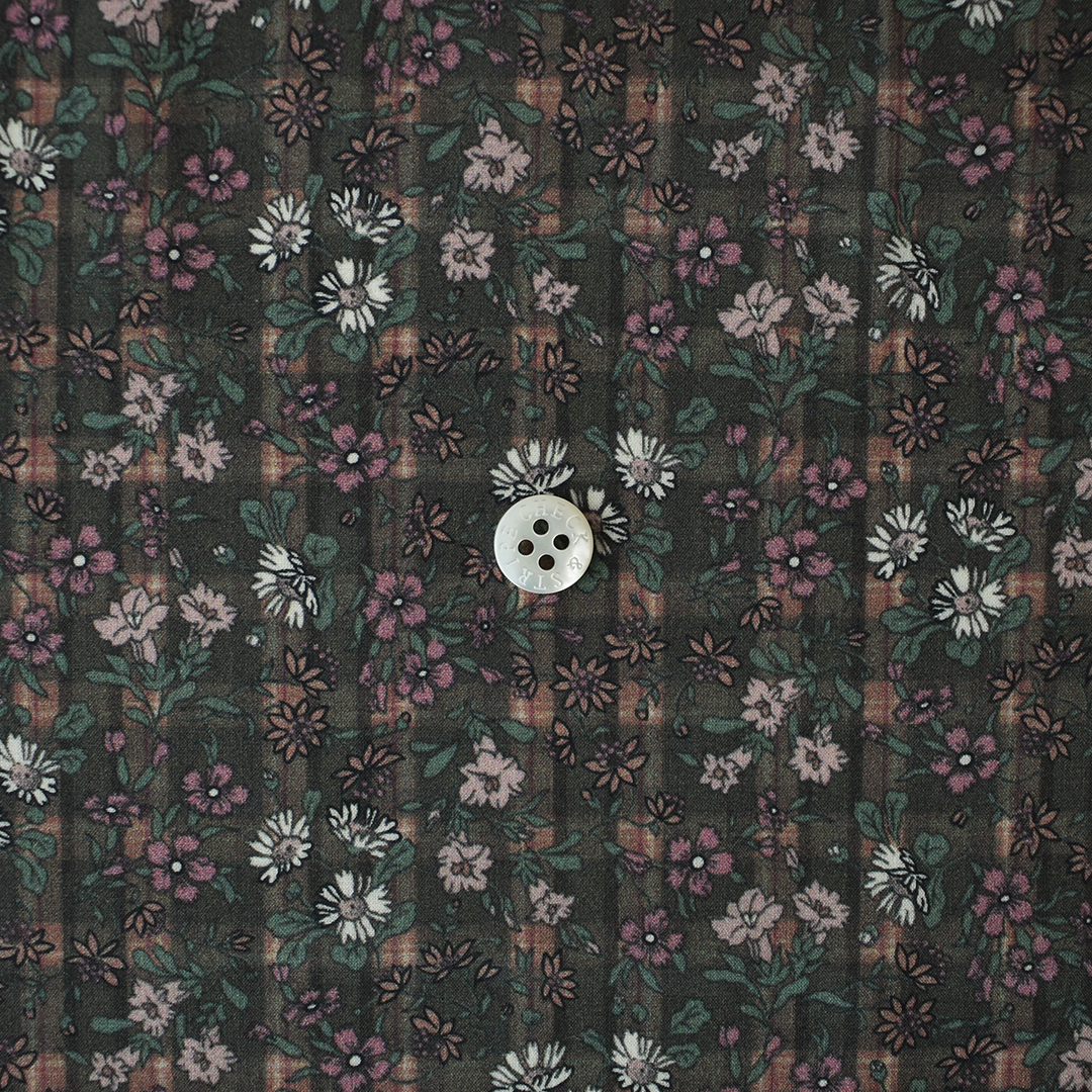 デイジー、ブルーベル、ナデシコが描かれた可愛らしい柄「Maria」をチェック柄に乗せてデザインしました。