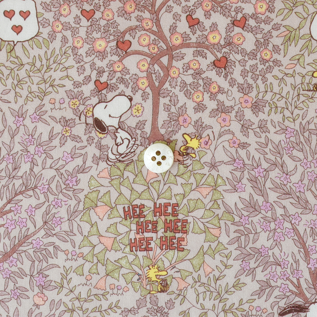 リバティのアーカイブに所蔵されている家具用生地のデザインから丁寧に描き直された楽しい花咲く森は、ウッドストックとスヌーピーにとって理想的な舞台なのかもしれません。繊細なタッチで描かれた木々の豊かなタペストリーに隠れて、春の風景の美しさを満喫し、飛び跳ねたり、スキップしたり、青々と茂る草木の中で休息のひととき…そんな風に過ごせたらどんなに楽しいでしょうね! -