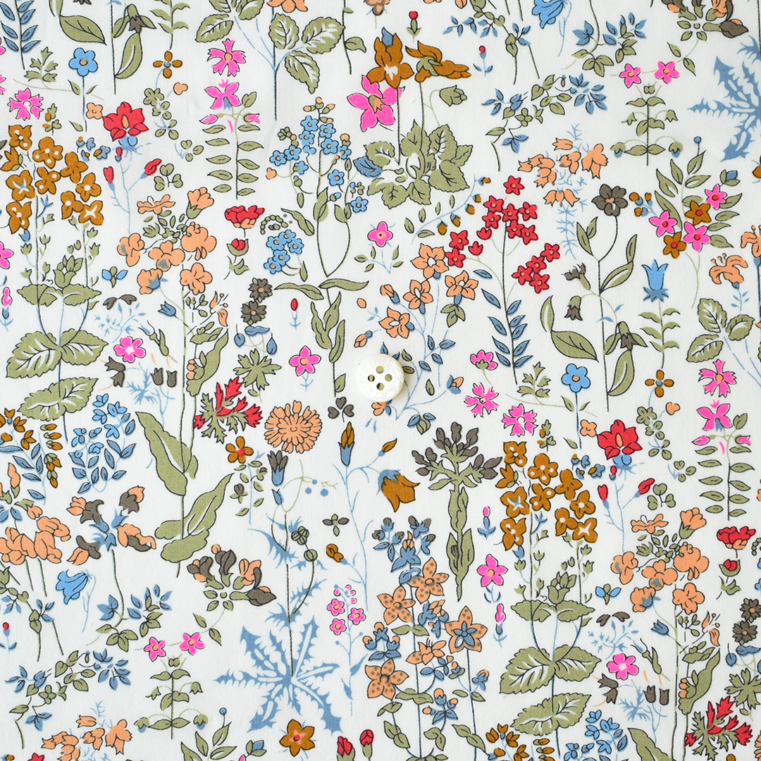 オリジナルデザインの「フィールド・フラワーズ」がネオン配色にリカラーされました。元々は、1970年春夏コレクションで初めてプリントされ、それ以来1980年代から1990年代にかけて多くのクラシックコレクションに加入していました。とても人気のあるこの小さなボタニカルプリントには、タンポポ、キンポウゲ、ワスレナグサ、ベルフラワーなどの野花が描かれています。