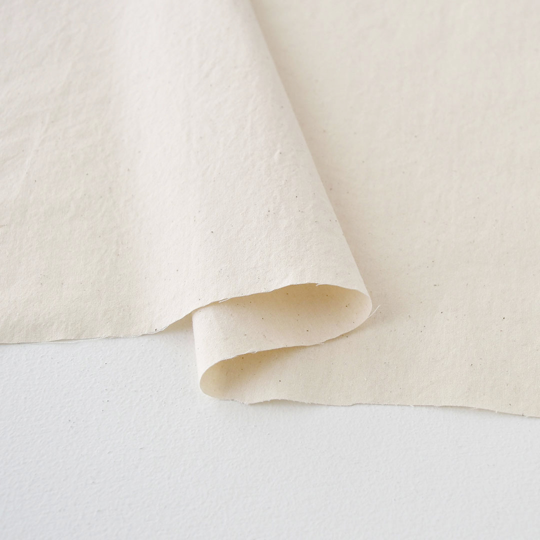 普通地くらいの厚みで高密度に織られており、比較的シワが寄りにくいハリのあるコットンです。
