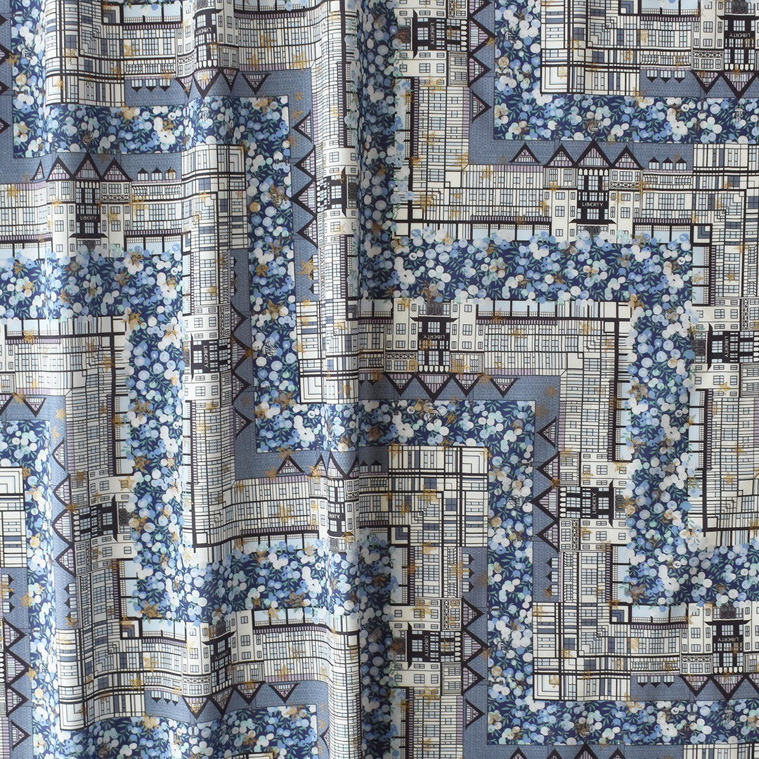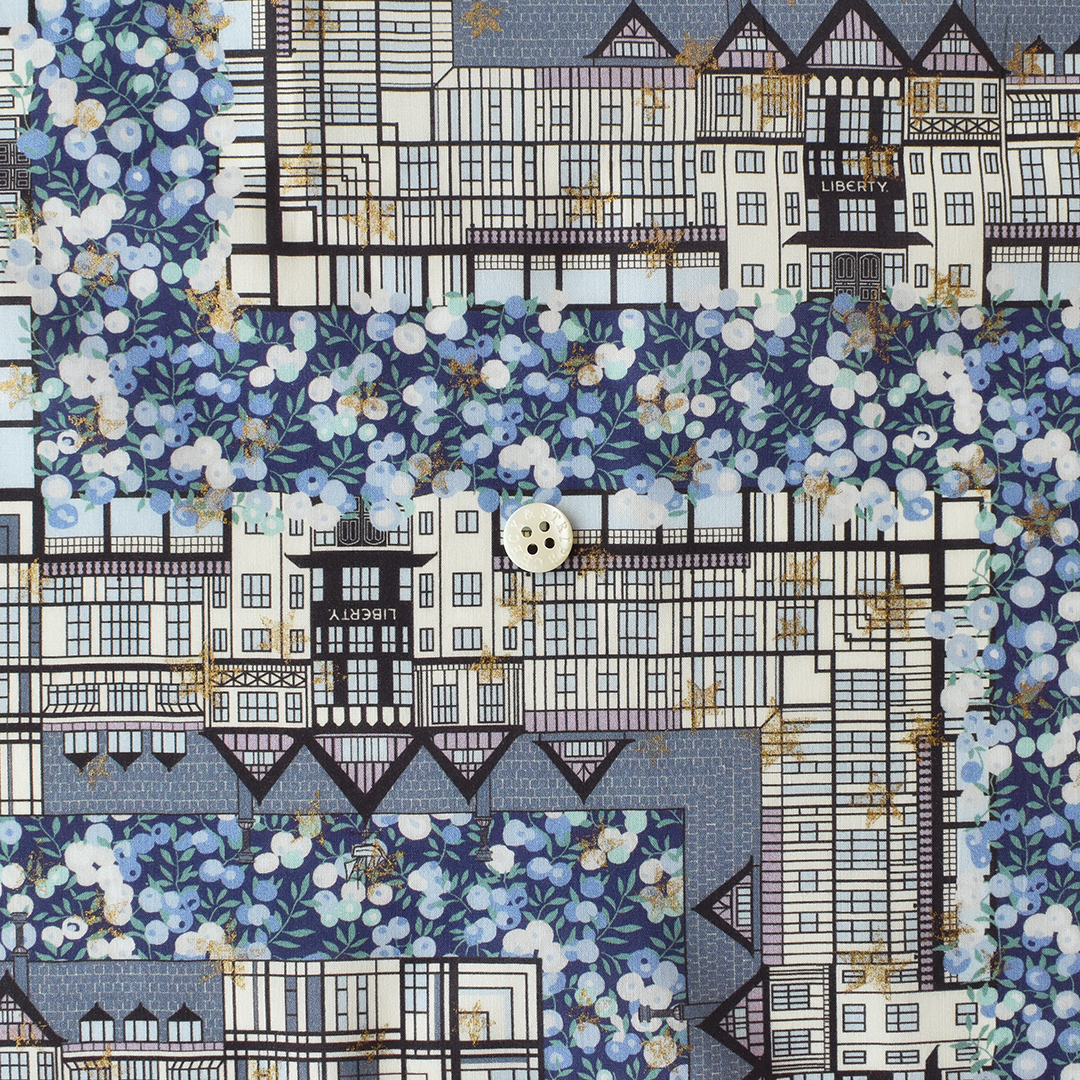 リバティ本店とその象徴するすべてへのラブレターのようなデザインでの「チューダー・ベリー」。「チューダー・ベル」と「ウィルトシャー・ベリー」を独自に組み合わせ、ひねりを加えたひと柄。きらめく星々を映し出すように仕上げられており、ホリデーシーズンにリージェント・ストリートの木製の扉をくぐるときのわくわくした気持ちを呼び起こします。