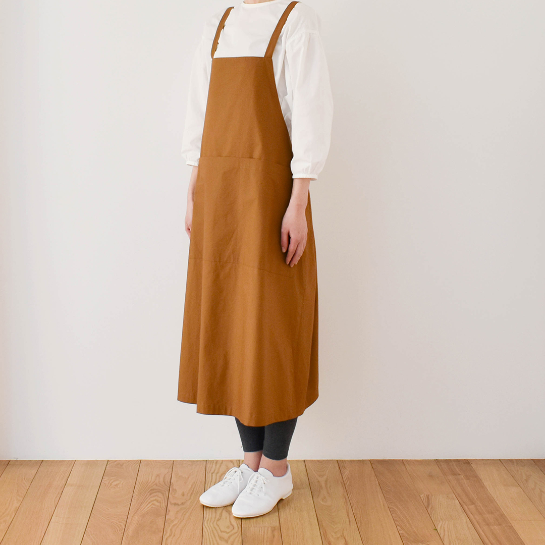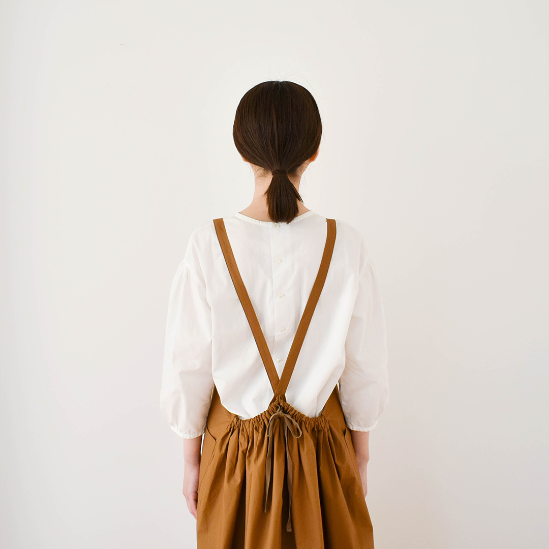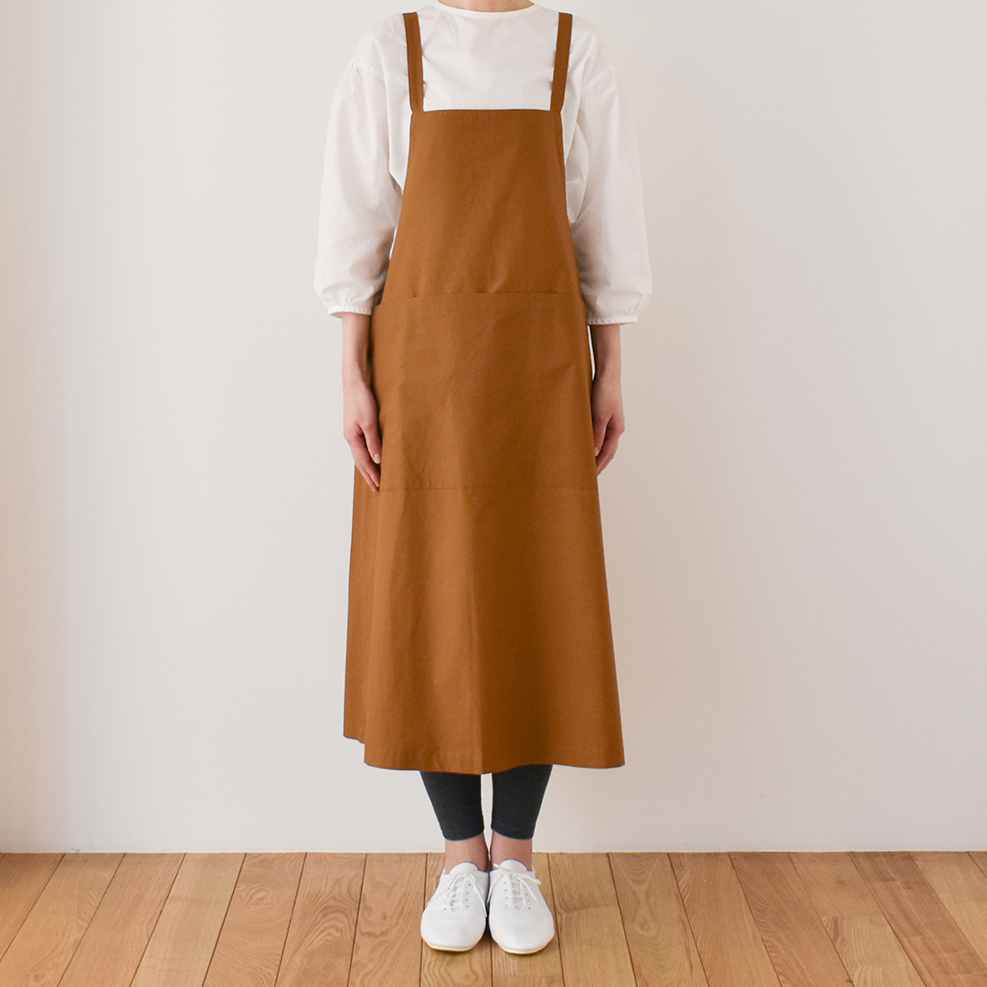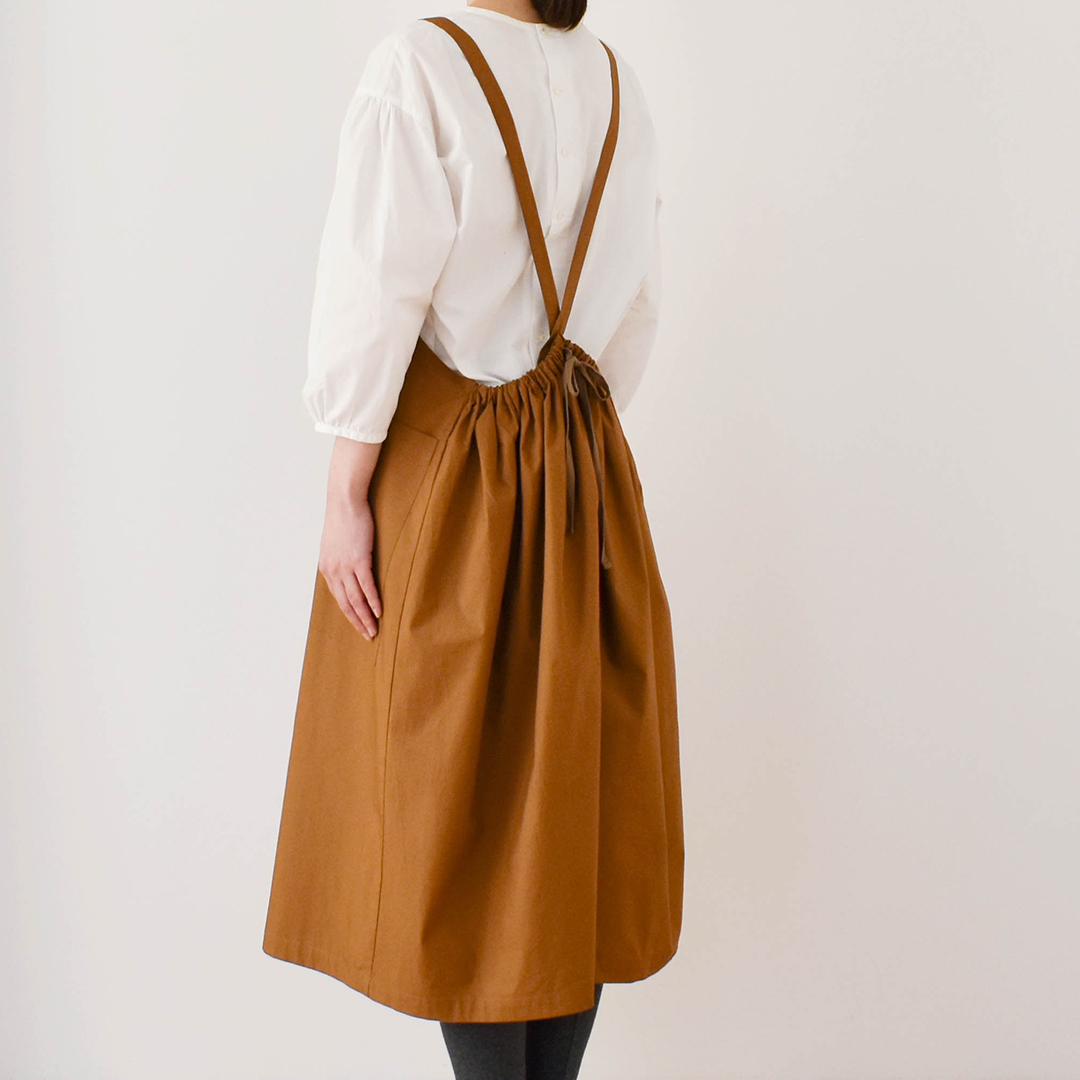 キャラメルブラウン:『CHECK&STRIPE SEW HAPPY』(世界文化社) 後ろギャザーのエプロンワンピース