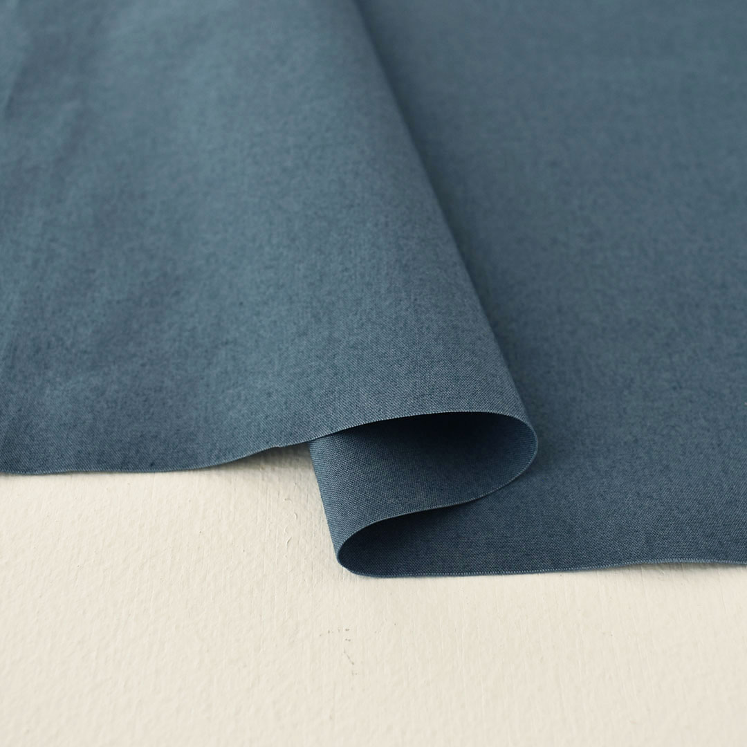 ・先染特有の織物のような統一感のある色合いではなく、光や角度によって、後染特有の濃淡が見られます。生地の製造の特性としてご了承ください。