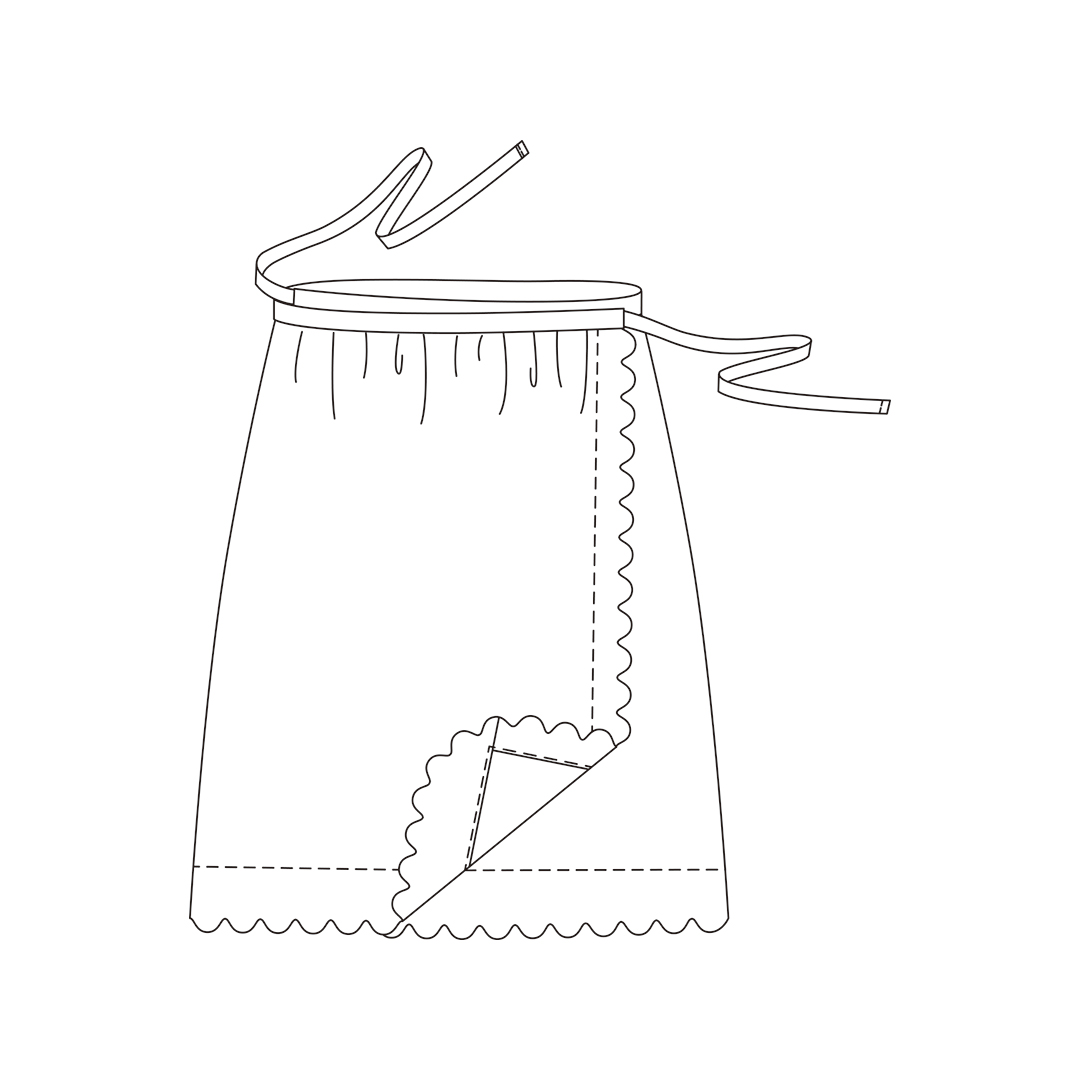C&Sコットンパピエ ホワイトでお作りする『CHECK&STRIPE my favorite 私の好きな服』(主婦と生活社)のスカラップの巻きスカートです。THE HANDWORKS の縫製スタッフが裁断から最後のアイロン仕上げまで丁寧に仕上げます。