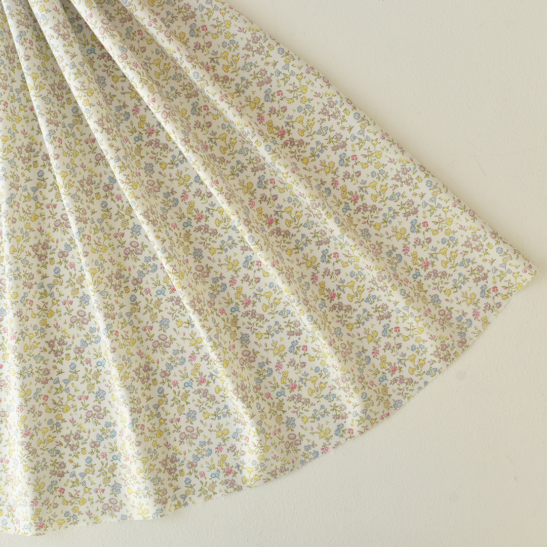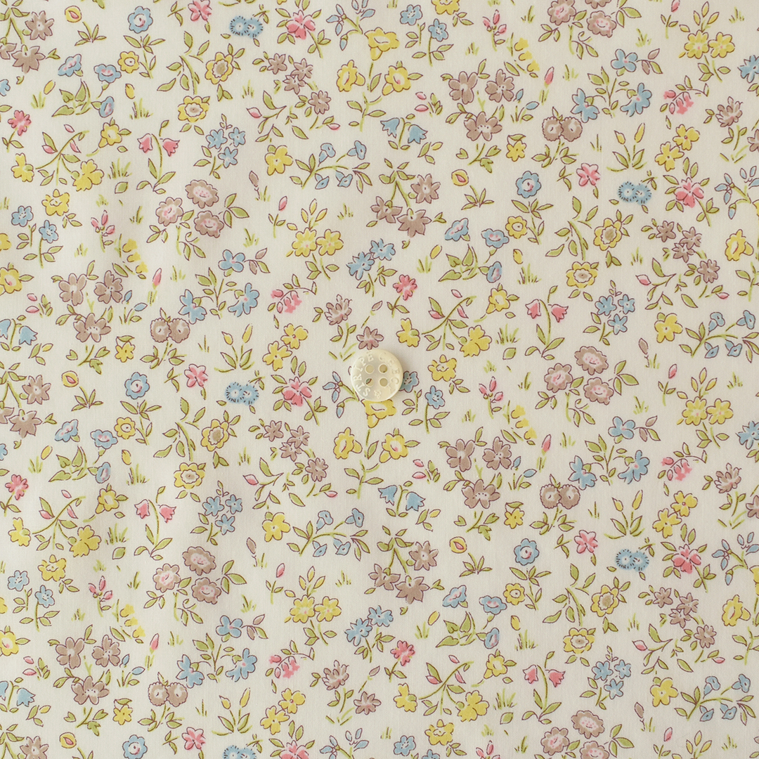 1936年に遡るリバティのアーカイブブックの中で見出された「メドゥ・スウィート」は、ブランドの本質ともいえるスタイルを体現した、魅力あふれるフローラルプリントです。春の小さな花々が一面に散りばめられ、デイジーやブルーベル、ほころび始めた蕾が、繊細な草の房に寄り添うように描かれています。どこか懐かしさを感じさせる情景が、穏やかで詩的なタペストリーのように広がります。