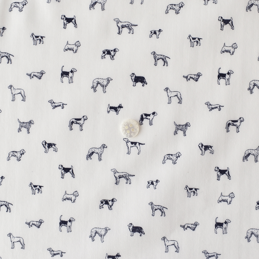 2021年秋冬のシティ・コレクションにて発表されたデザインです。洗練されたシティ・コレクションに、ひねりの効いたカンバセーショナルデザインを加えました。詳細に描かれた犬のイラストが間隔をあけてレイアウトされています。