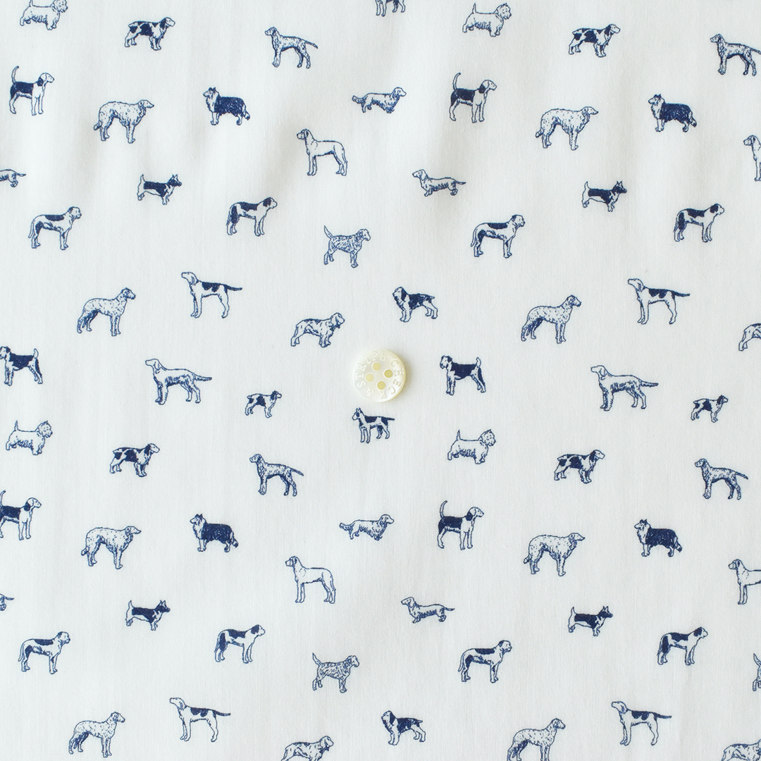 2021年秋冬のシティ・コレクションにて発表されたデザインです。洗練されたシティ・コレクションに、ひねりの効いたカンバセーショナルデザインを加えました。詳細に描かれた犬のイラストが間隔をあけてレイアウトされています。