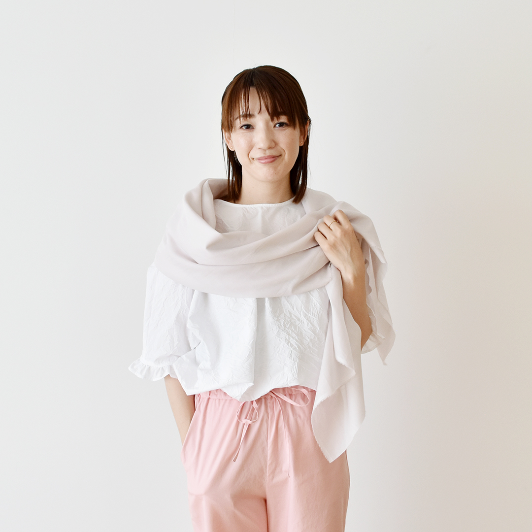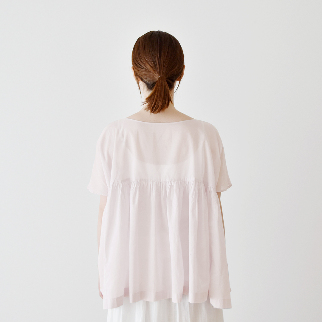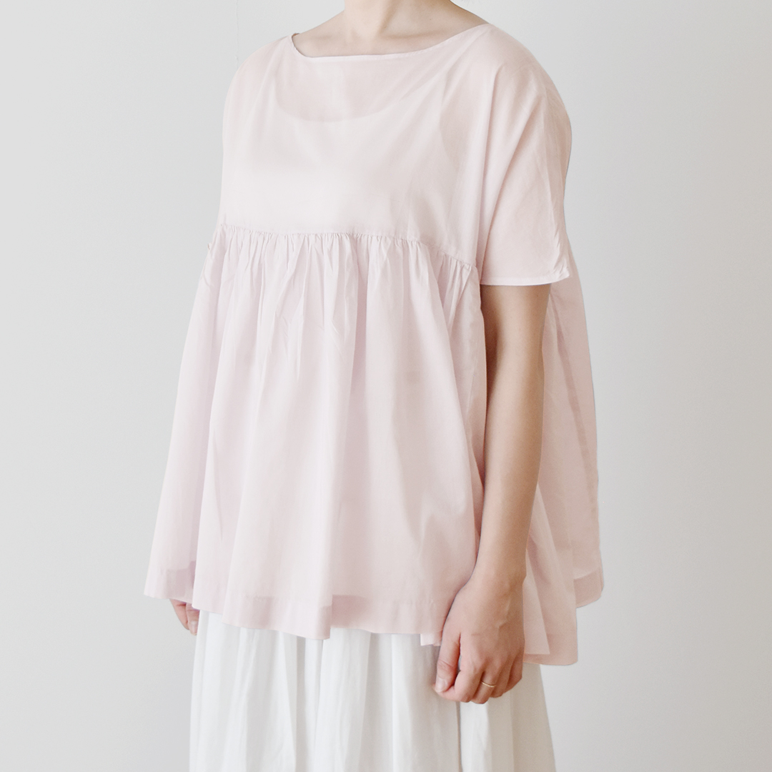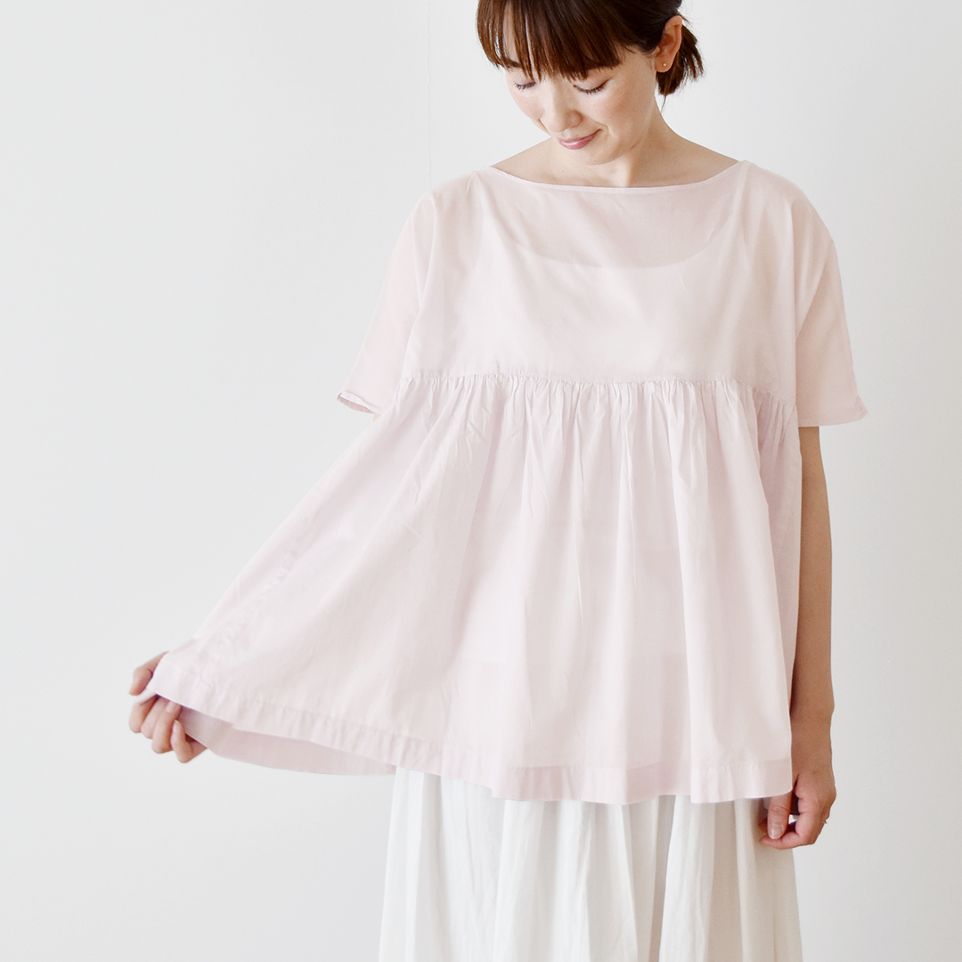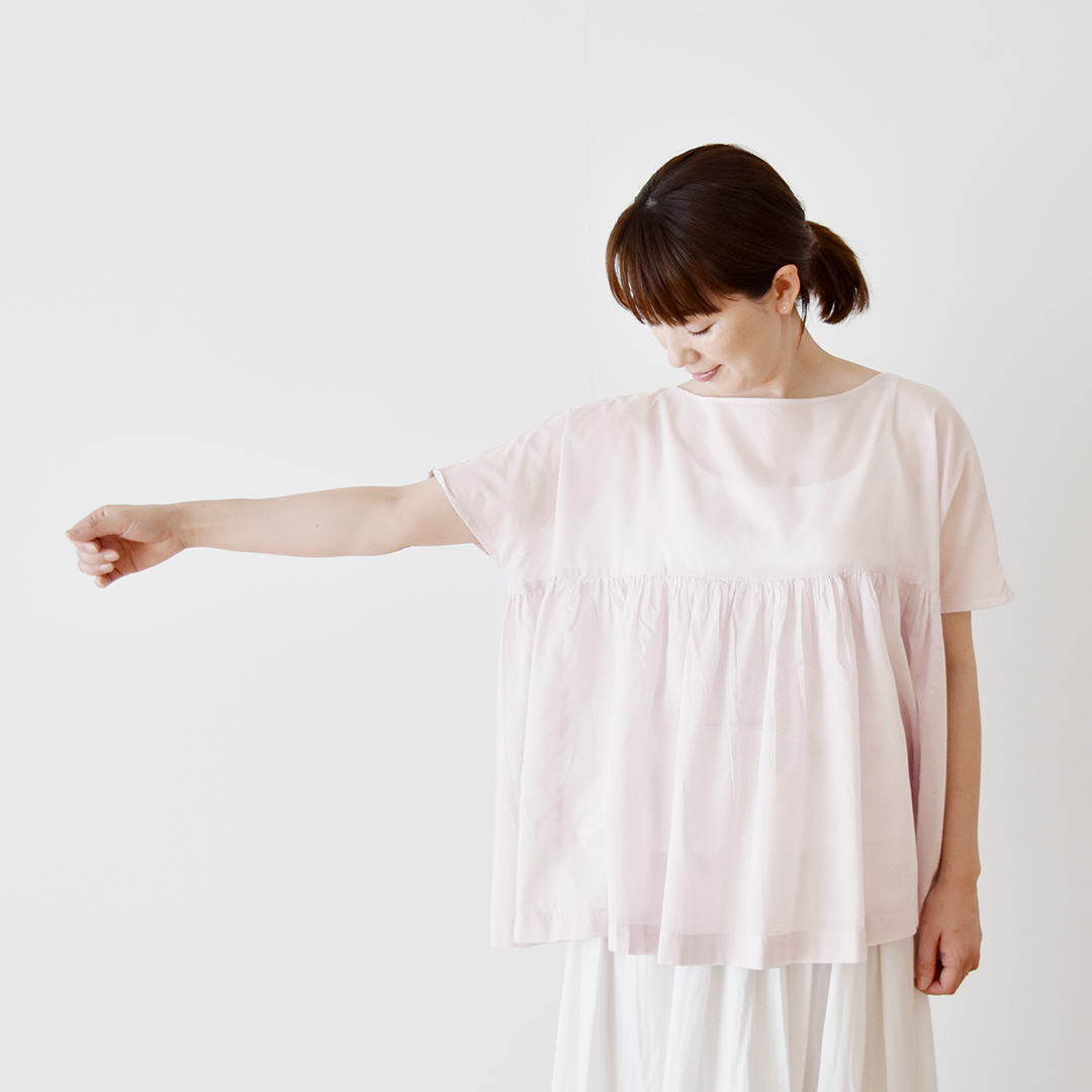 パウダーピンク:『CHECK&STRIPE COLOUR BOOK 色を楽しむソーイングブック』(文化出版局) ハイウエストギャザーのブラウス