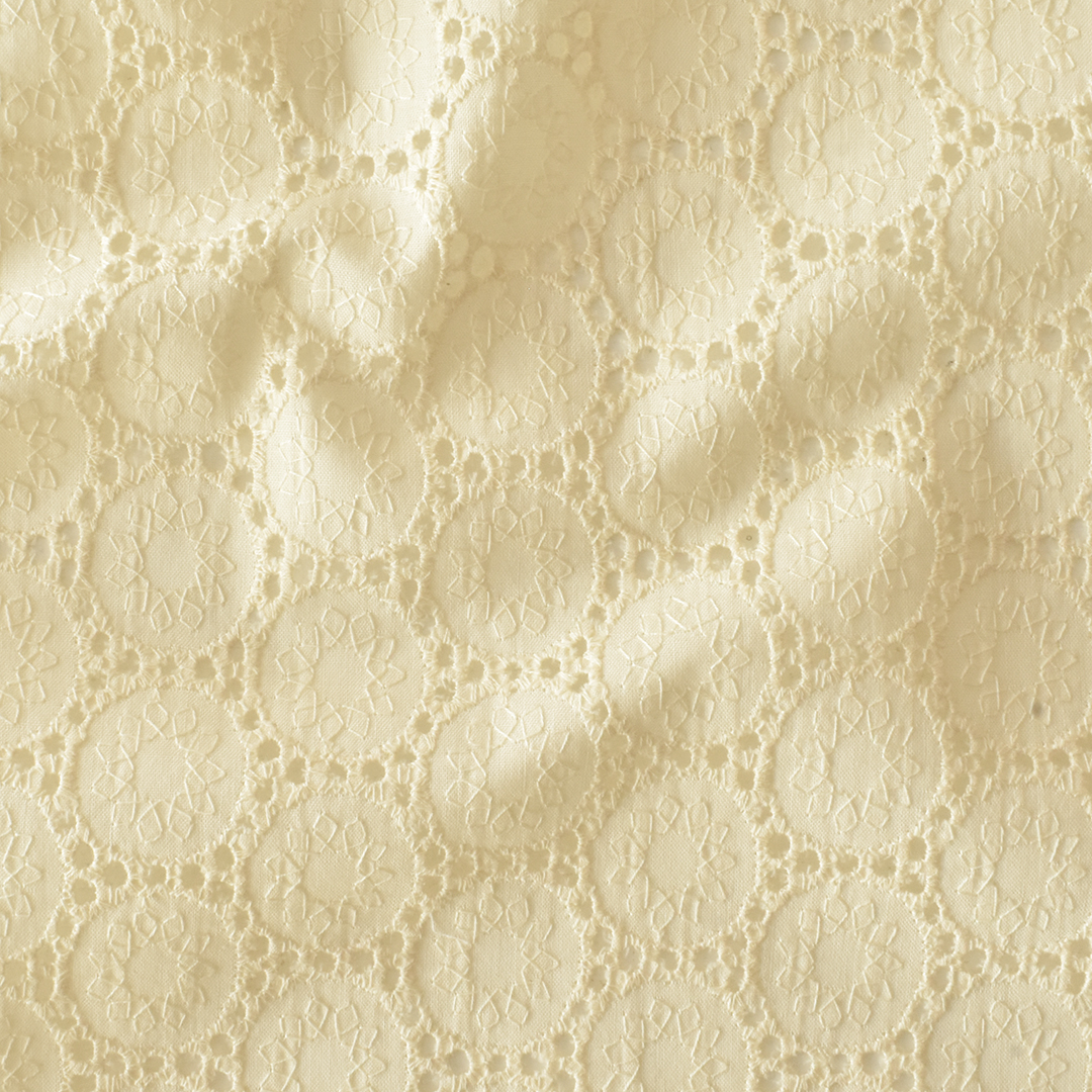 肌触りの良い綿60ローン生地に水玉模様の刺繍をしたコットンレースです。