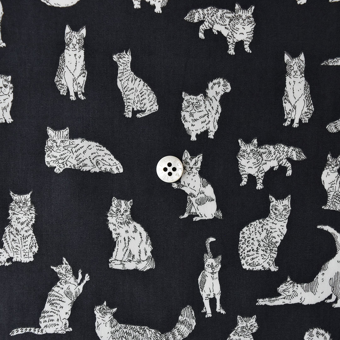 ラグドール、ブリティッシュショートヘア、メインクーン、アビシニアン、ベンガル、ビルマなど、さまざまな種類の個性豊かな猫たちが、徘徊したり、ポーズを取ったり、伸びをしたり、くつろいだりと、魅力あふれるカンバセーショナルデザインです。デザインスタジオで描かれたスケッチ風のインクペンのイラストは、大胆な地色に配置され、それぞれのネコを縁取るように丁寧に描かれています。 -