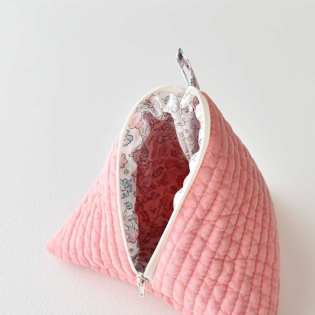 ころんとかわいいさんかくのポーチです。バッグの中の小物の整理におすすめです。