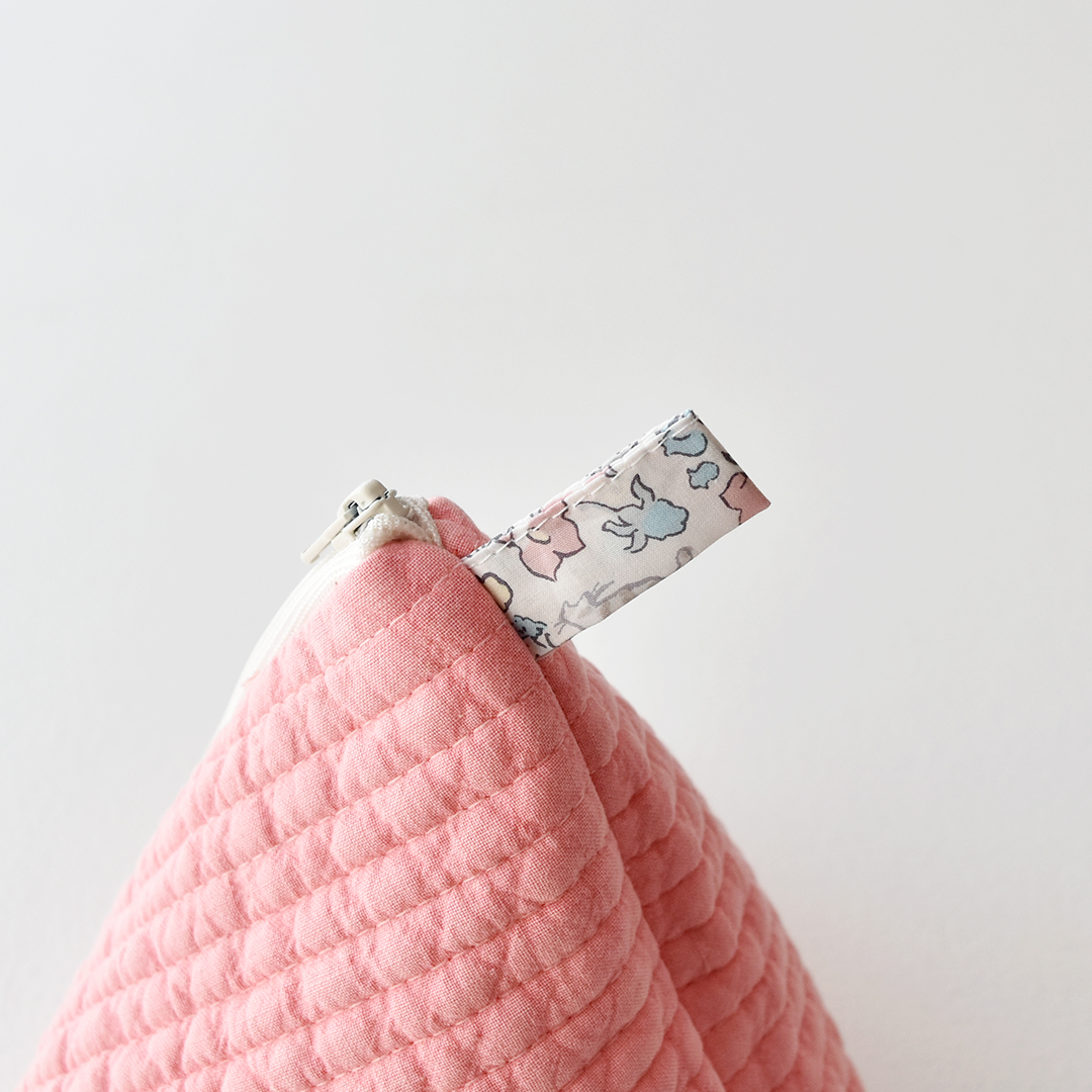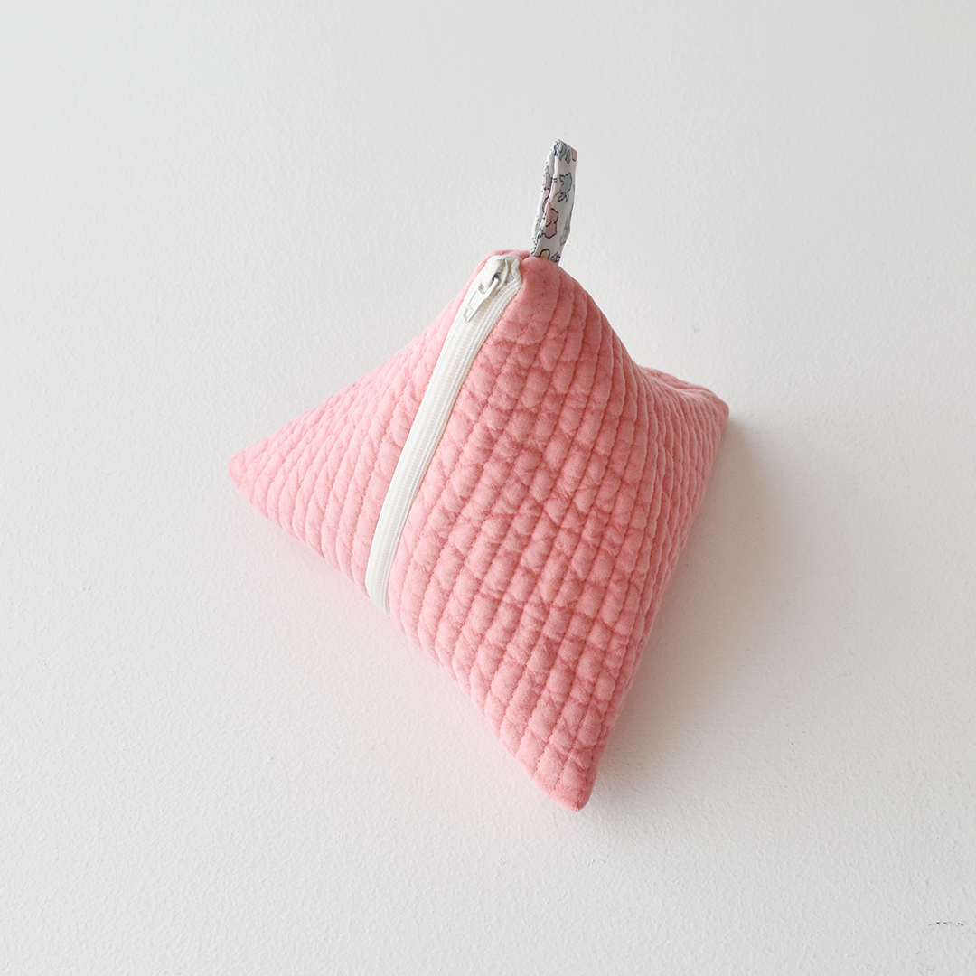 ころんとかわいいさんかくのポーチです。バッグの中の小物の整理におすすめです。