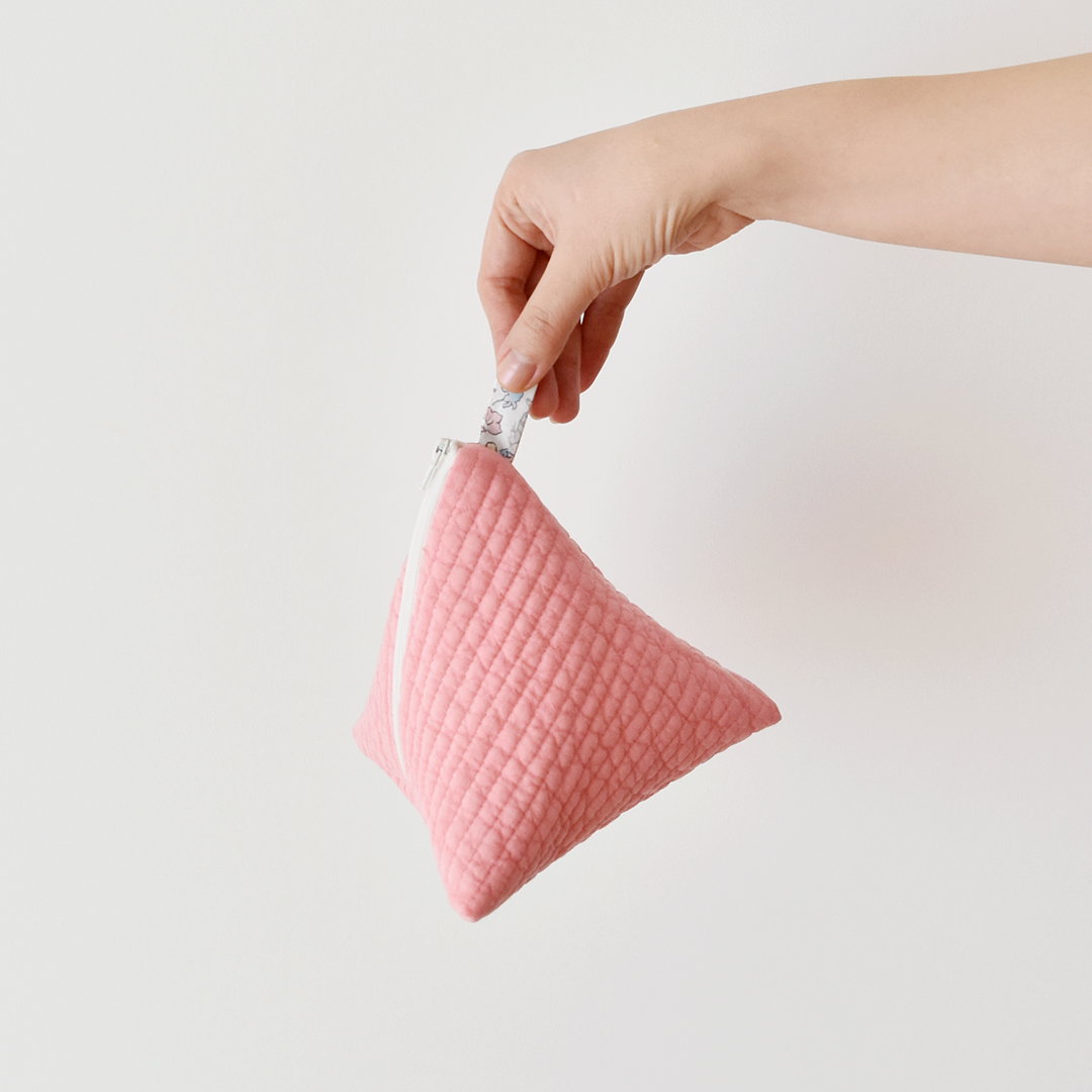 ころんとかわいいさんかくのポーチです。バッグの中の小物の整理におすすめです。
