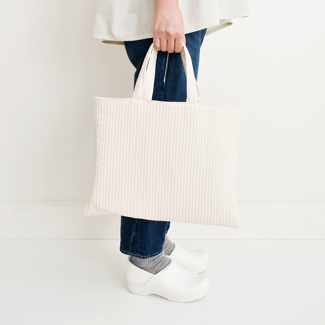 やわらかい薄手のキルティング生地で、裏地をつけても軽いバッグに仕上がります。