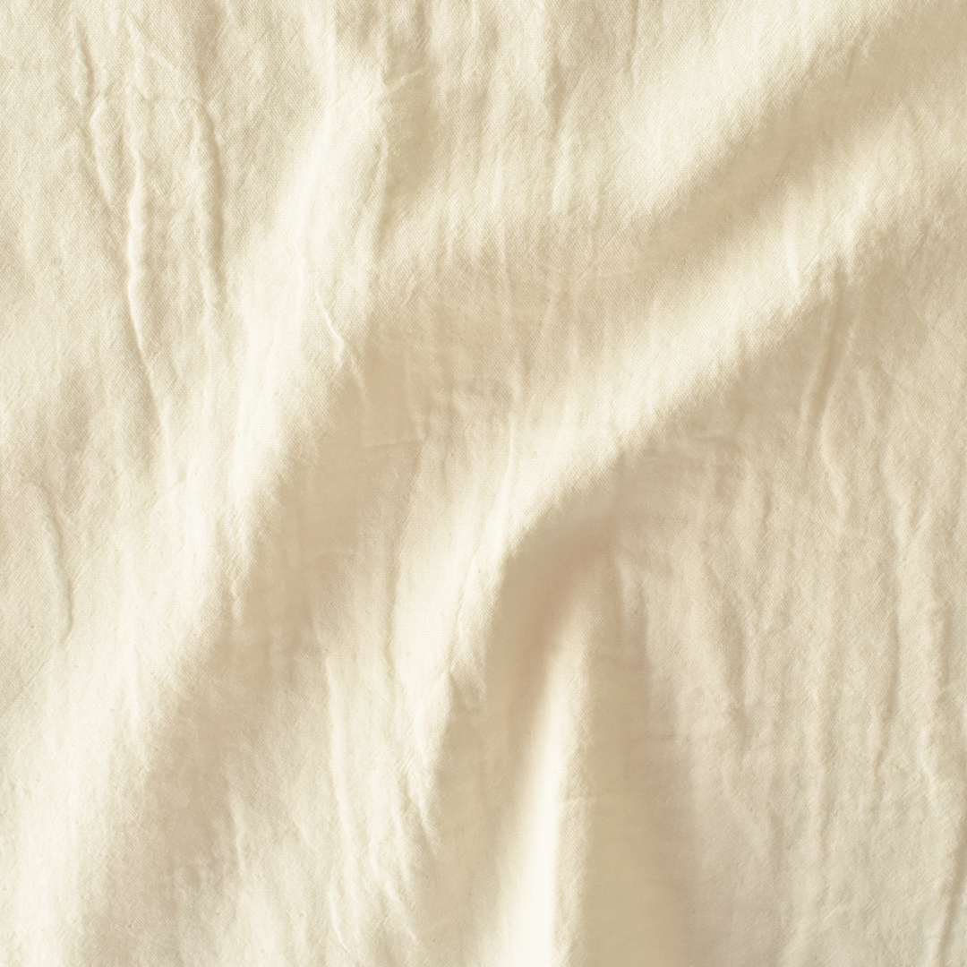 生地に張力をかけずにワッシャー加工をほどこし、小さな釜の中で揉みこむことで、やわらかくヴィンテージ感のある風合いにしあげました。