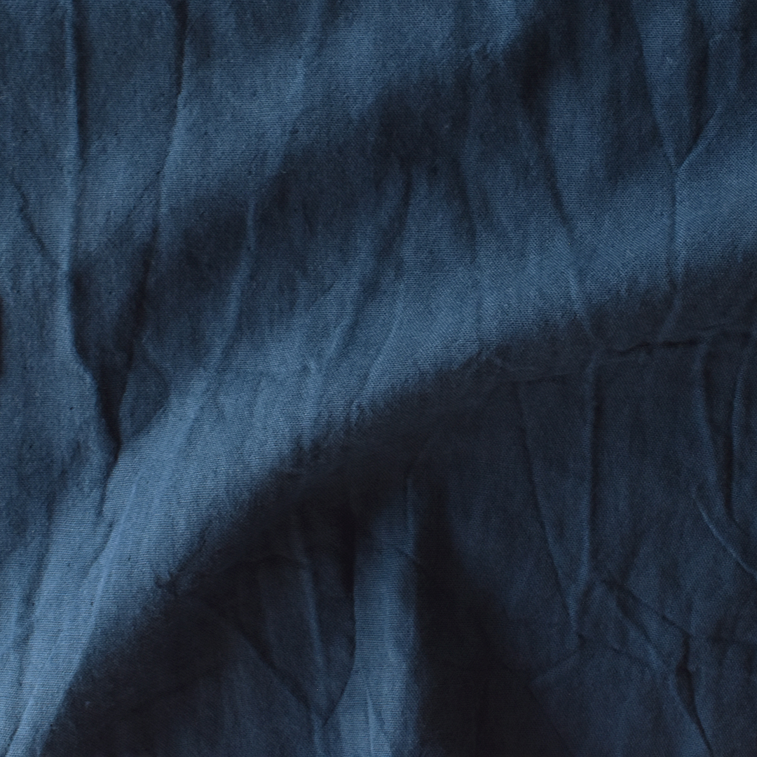 生地に張力をかけずにワッシャー加工をほどこし、小さな釜の中で揉みこむことで、やわらかくヴィンテージ感のある風合いにしあげました。