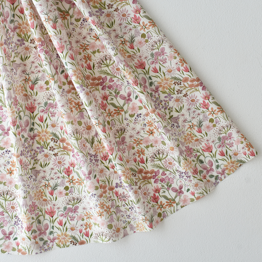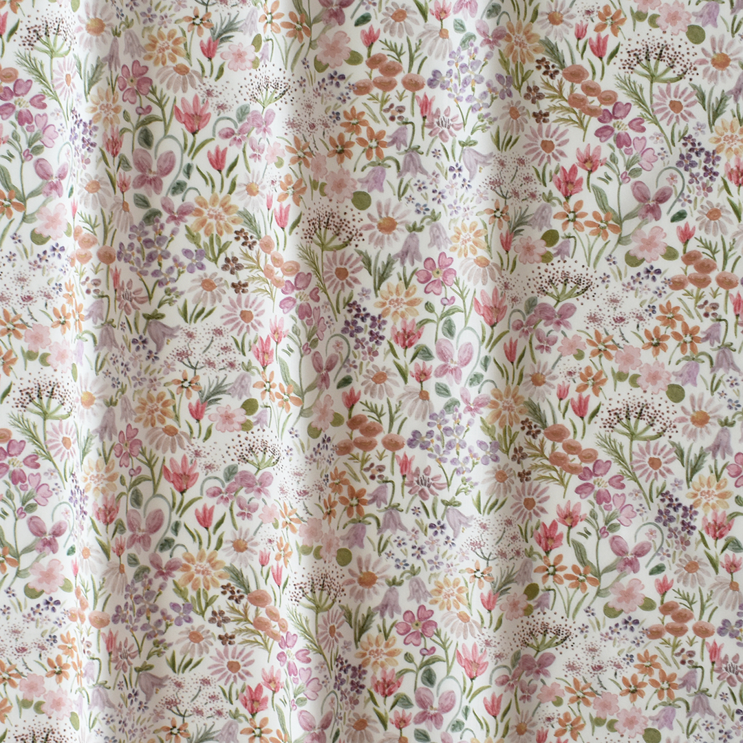 19世紀英国のマジョリカ陶器から着想を得た、手描きによるボタニカルデザインです。穏やかな野花の情景を描き出し、豊かなテクスチャーを感じさせる構成の中に、デイジーやパンジー、ブルーベル、プリムローズ、エルダーフラワーが、大小さまざまなフォルムで調和よく描かれています。ミクストメディアで表現された「ハル・ブルーム」は、色と形が織りなす静けさと安らぎを湛え、色彩豊かな春の草原をそっと吹き抜ける、やさしい風のような落ち着いた佇まいを放ちます。